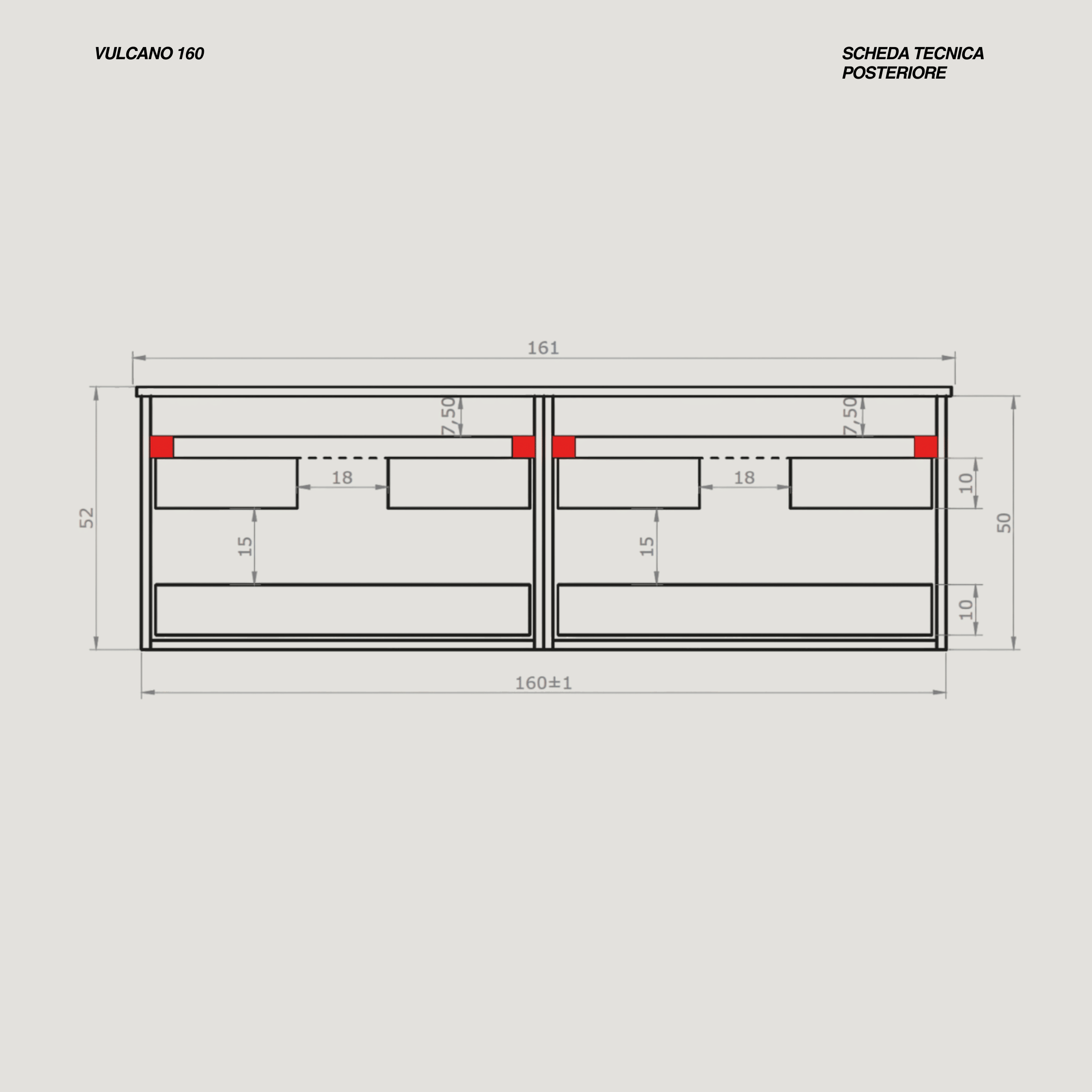Mobile Bagno Sospeso 160 Cm Quattro Cassetti Specchi Retroilluminati Diametro 80 Cm Esseci Arredo Bagno "Vulcano"