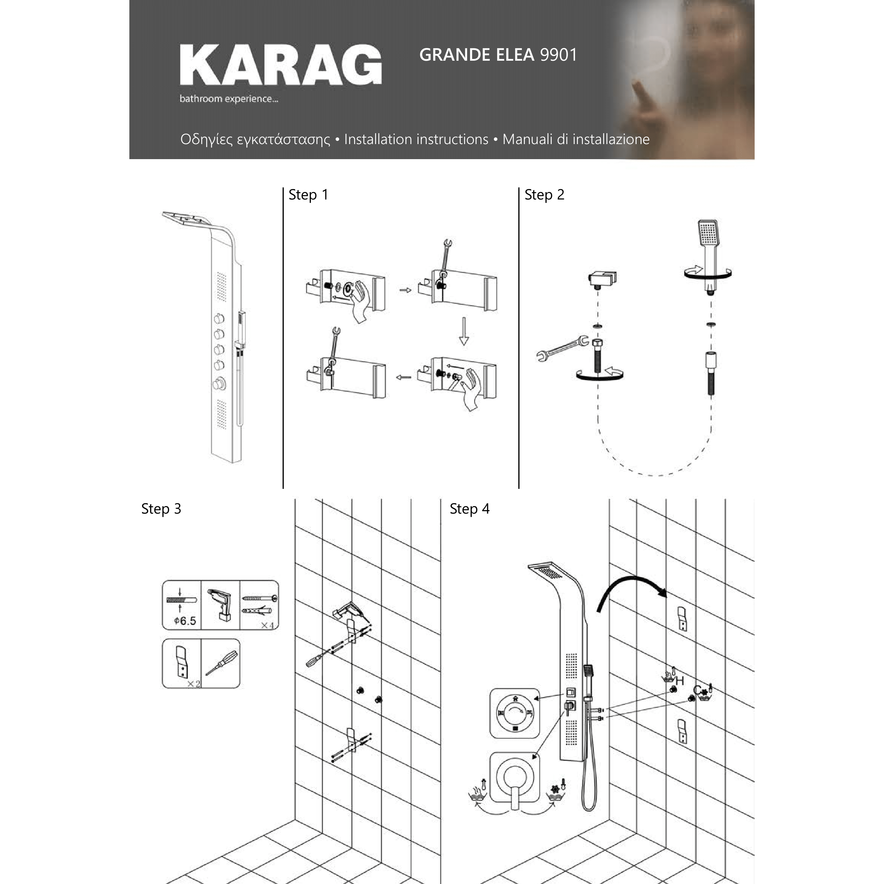 Colonna Doccia Idromassaggio Con Effetto Pioggia e Kit Doccetta Karag "Grande Elea" Cromo Lucido