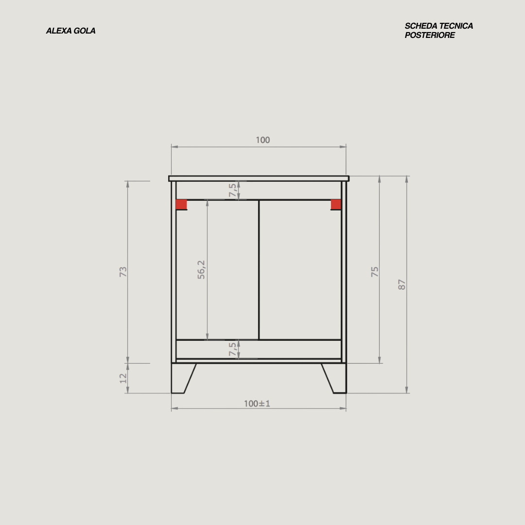 - Misure base: L 100 x P 46 x H 82 (cm)