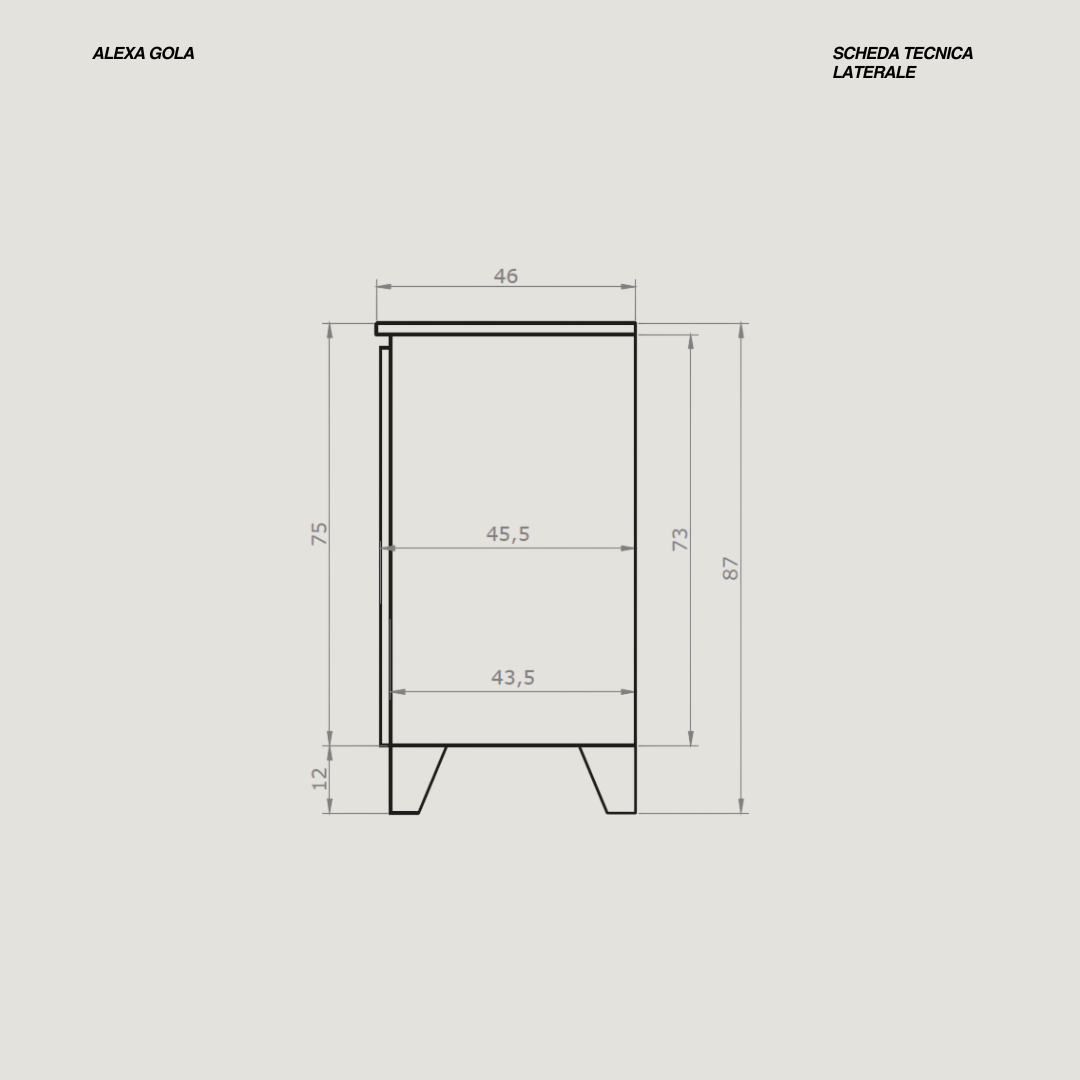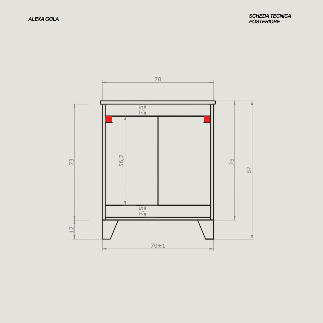 • Misure base: L 70 x P 46 x H 82 (cm)