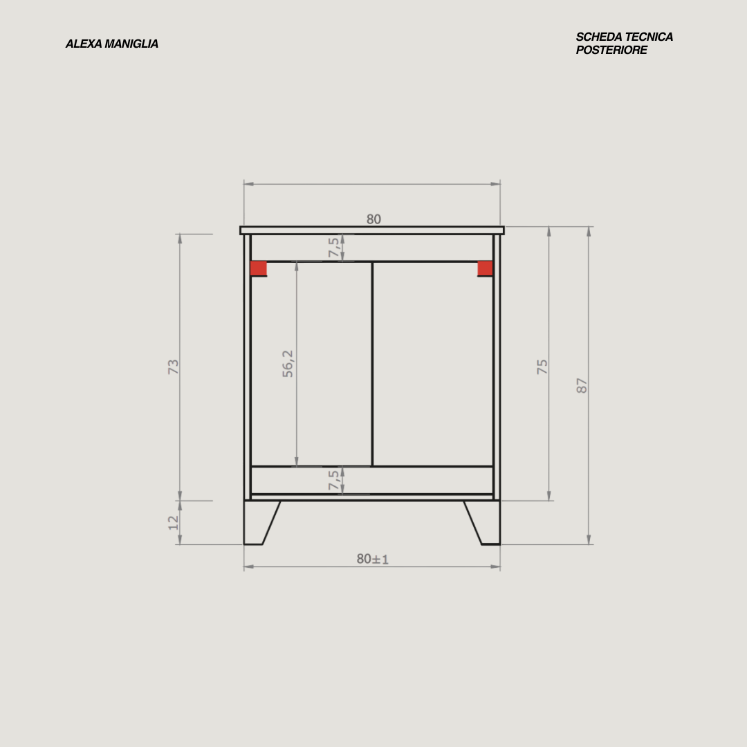- Misure base: L 80 x P 46 x H 82 (cm)