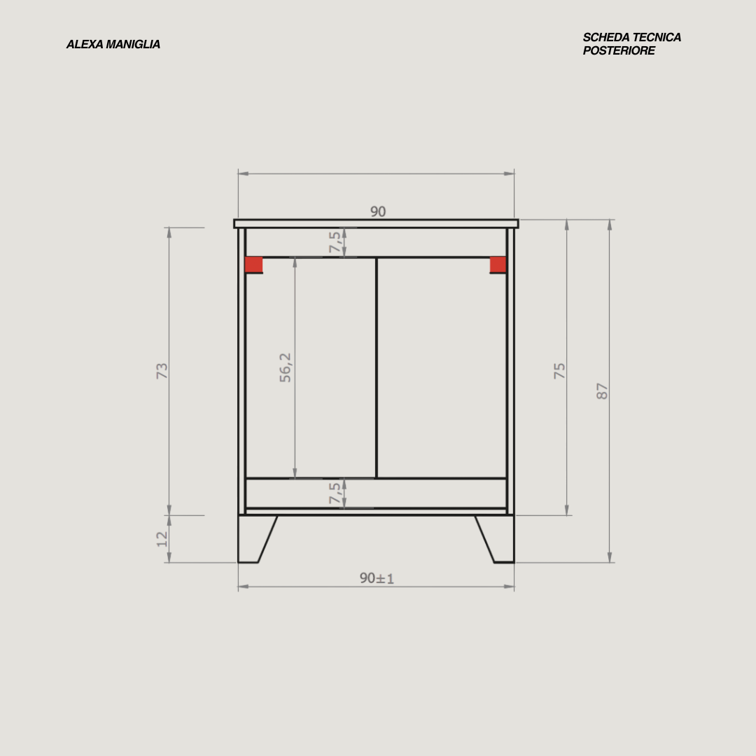 • Misure base: L 90 x P 46 x H 82 (cm)