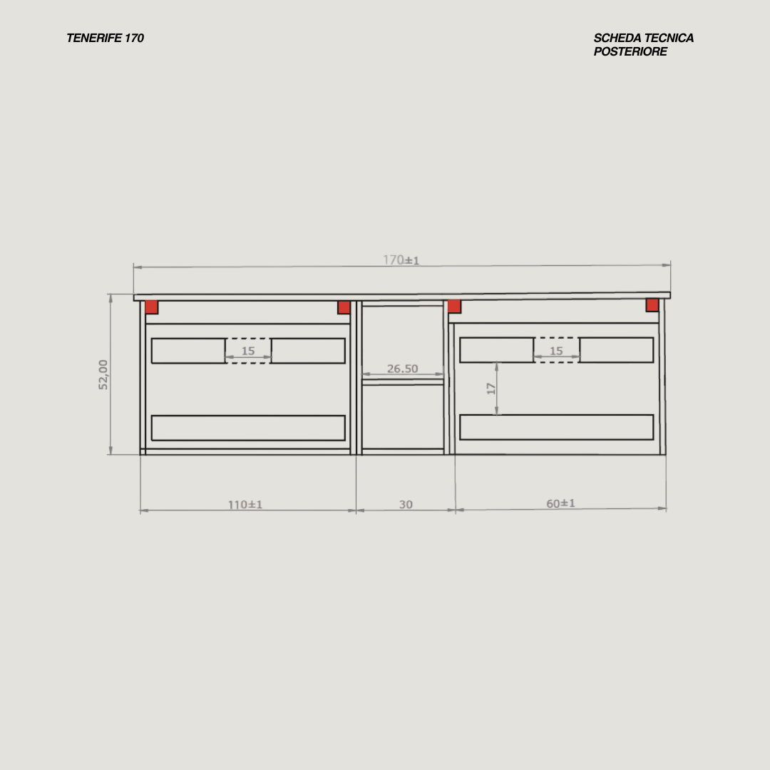 - Misure prodotto: L 170 x P 46 x H 28 (cm)