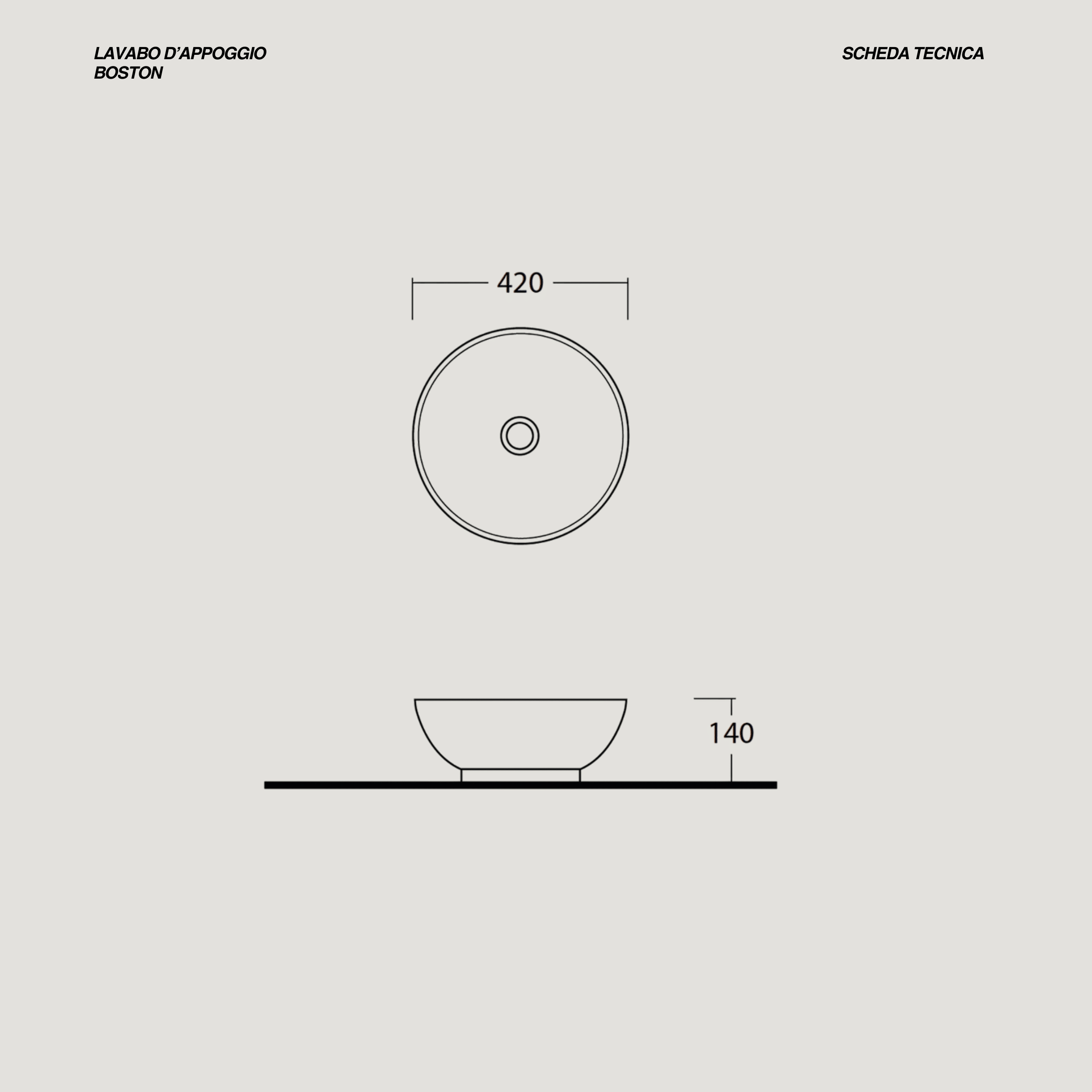 • Misure lavabo: Diam.42 x H 14 (cm)