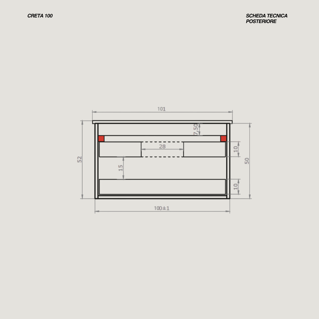 • Misure lavabo: L 101 x P 46 x H 2 (cm)