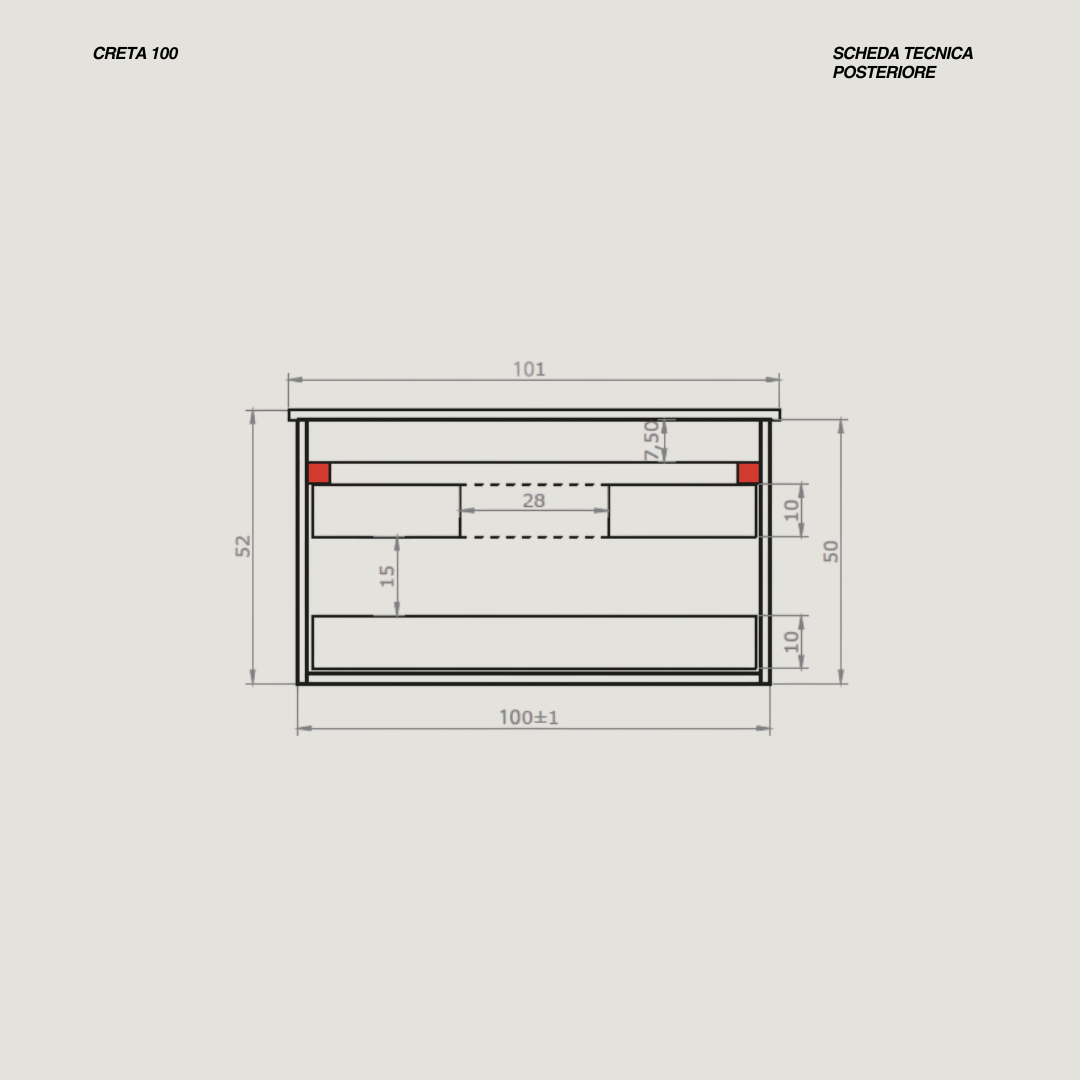 - Misure lavabo: L 101 x P 46 x H 2 (cm)