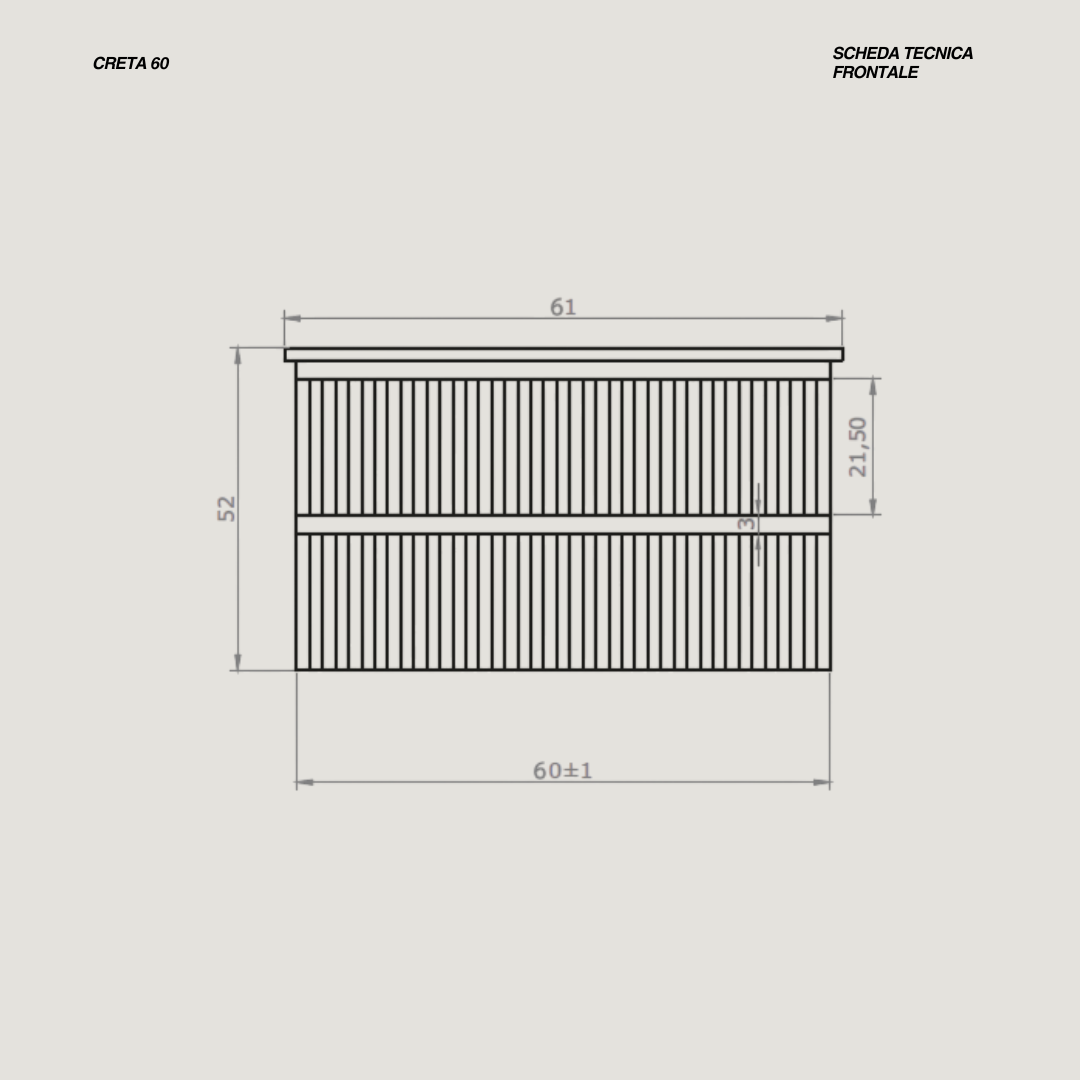 Mobile Bagno Sospeso Cannettato 60 Cm Due Cassetti Specchio Retroilluminato 80x60 Cm Esseci Arredo Bagno "Creta Verticale"