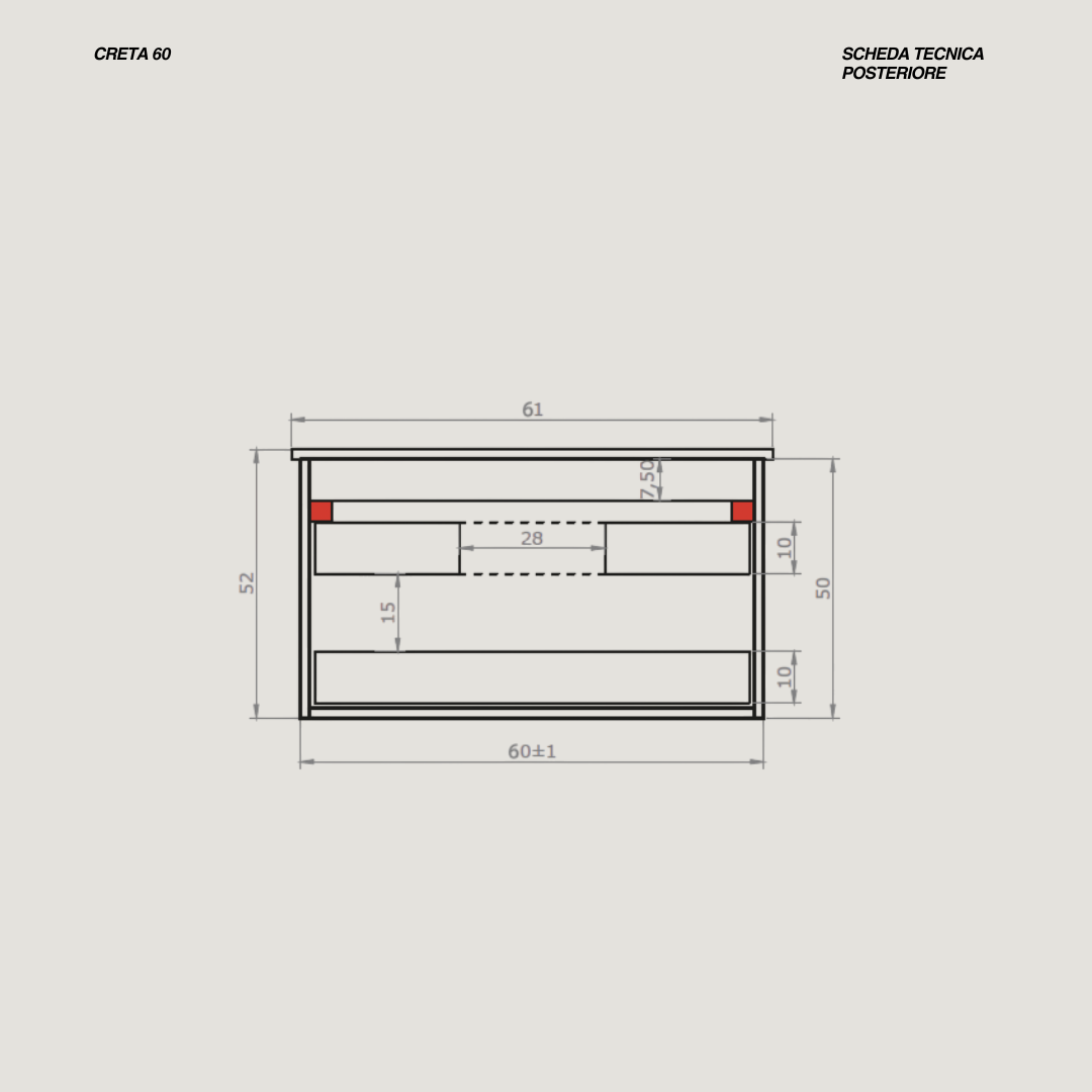 - Misure lavabo: L 61 x P 46 x H 2 (cm)
