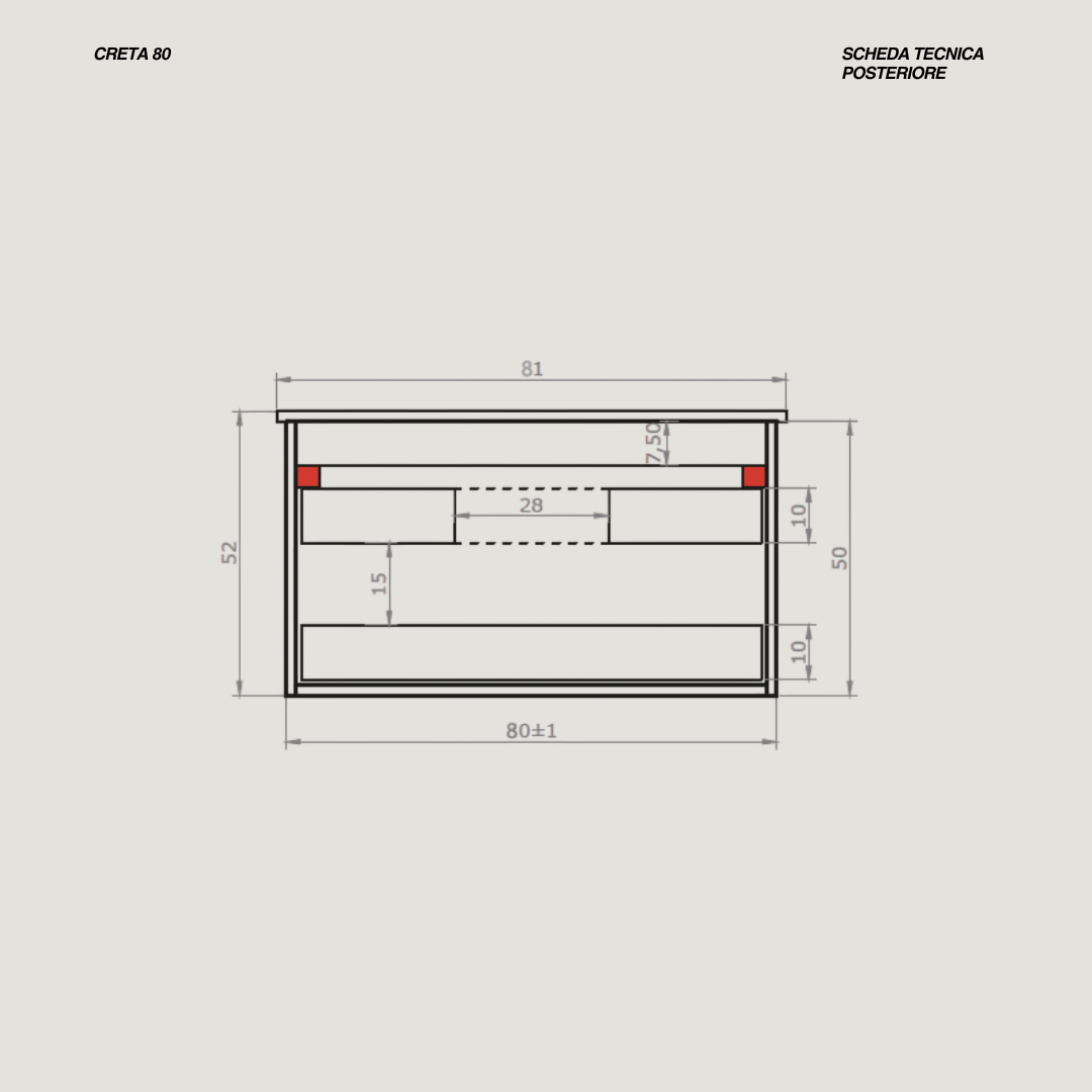 • Misure lavabo: L 81 x P 46 x H 2 (cm)