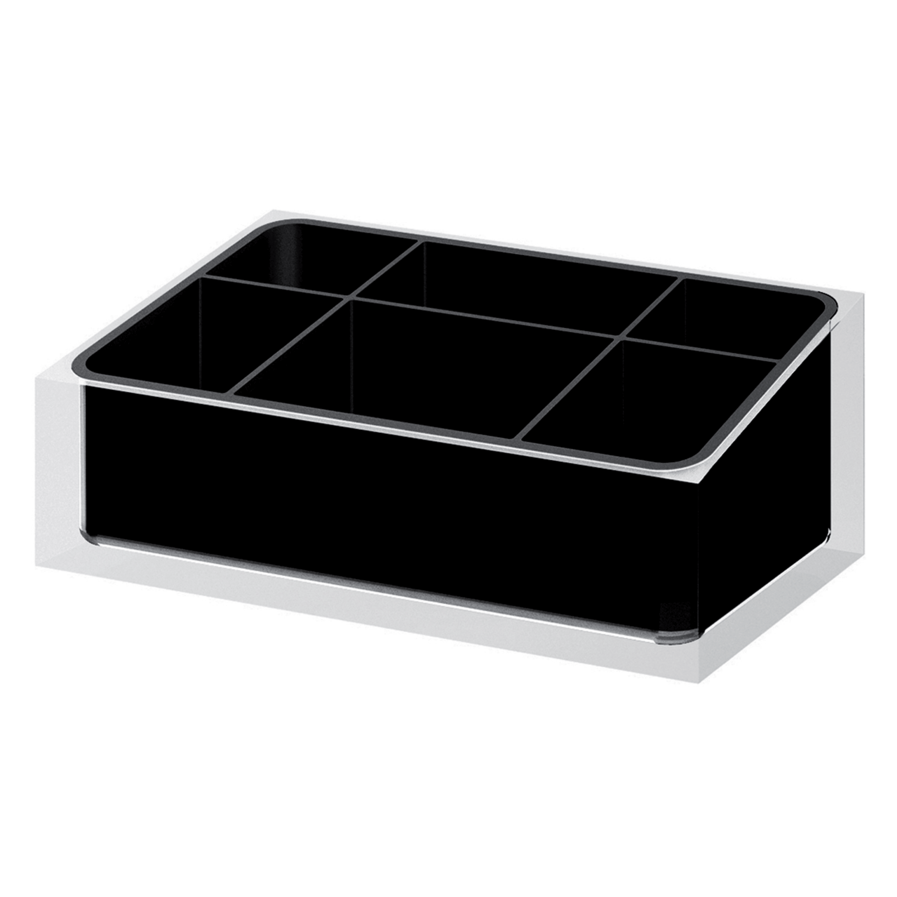 Questo organizer portascosmetici è realizzato in resine termoplastiche con finitura nero e presenta un design semplice e funzionale, ideale per mantenere in ordine il reparto cosmetica con praticità ed eleganza. Pensato per l’uso quotidiano, consente di organizzare trucchi, pennelli e piccoli accessori in modo ordinato, evitando il disordine all’interno della stanza o sul piano d’appoggio. La struttura compatta e leggera lo rende facile da posizionare su cassettiere, mensole o superfici del bagno e della camera da letto, adattandosi a diversi stili di arredamento. Le dimensioni di 19 cm di larghezza, 11 cm di profondità e 7,5 cm di altezza lo rendono capiente ma poco ingombrante, offrendo una soluzione pratica e ordinata per la gestione quotidiana dei cosmetici.