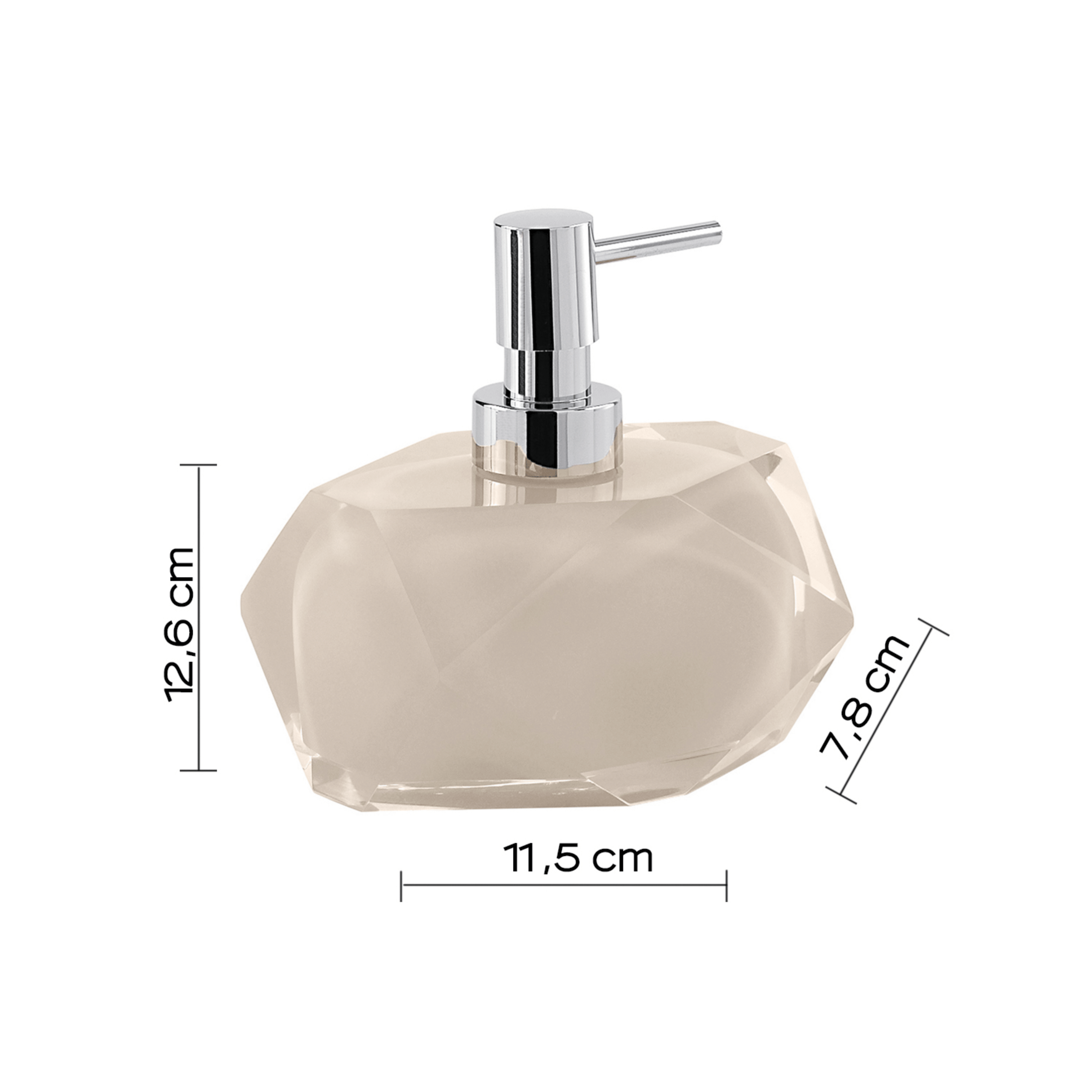 Questo portadispenser d’appoggio è realizzato in resina e completato da un erogatore in plastica con finitura cromata, una combinazione che dona al prodotto un aspetto elegante e funzionale, adatto a diversi stili di ambiente bagno. Pensato per l’utilizzo quotidiano, permette di dosare il sapone in modo pratico e controllato, contribuendo a mantenere il lavabo ordinato e sempre curato. Il design semplice e compatto consente un facile posizionamento su qualsiasi piano d’appoggio, mentre la struttura stabile assicura sicurezza durante l’uso. Le dimensioni di 12 cm di larghezza, 7 cm di profondità e 12,6 cm di altezza lo rendono poco ingombrante ma capiente, ideale per un utilizzo pratico e armonioso all’interno dell’arredo bagno.