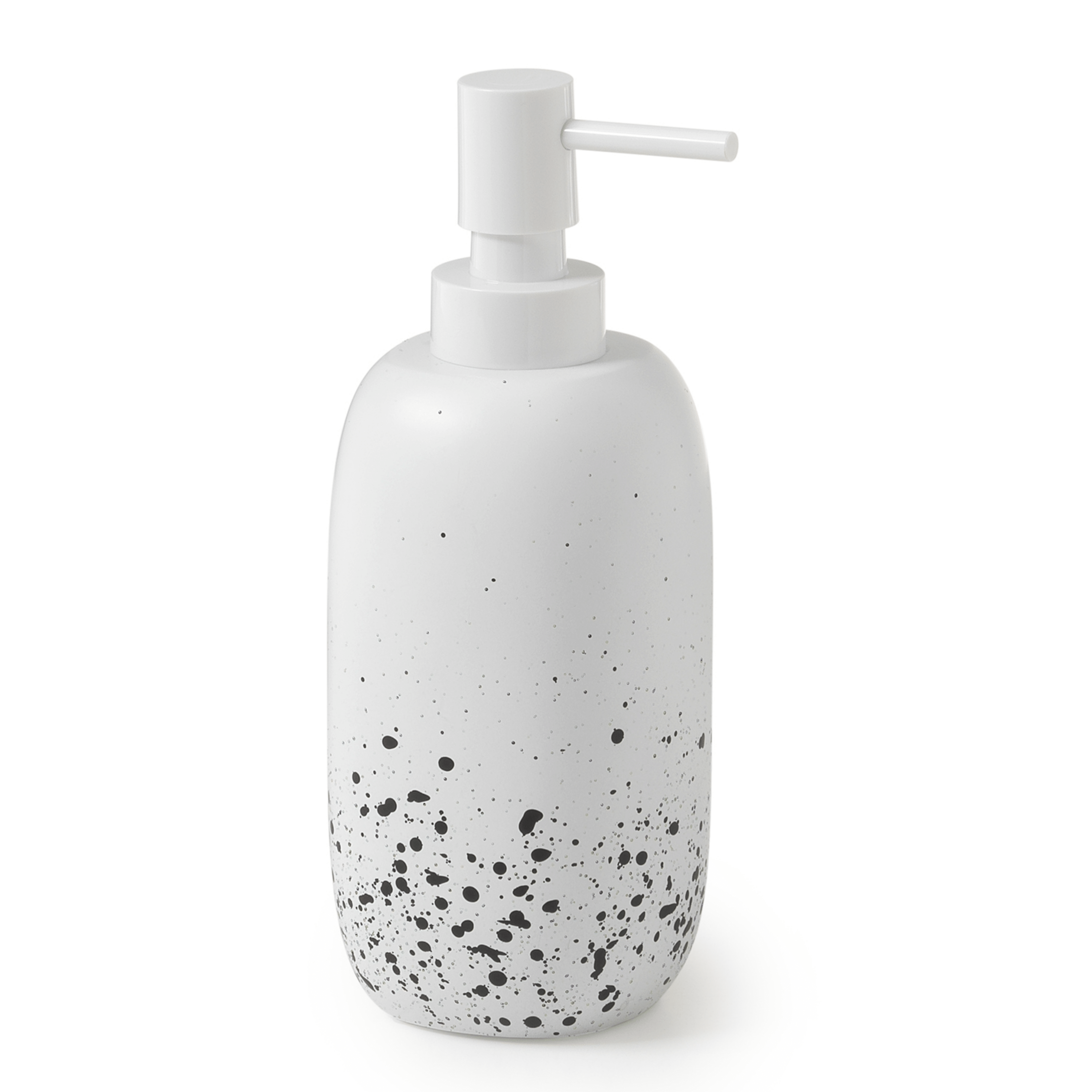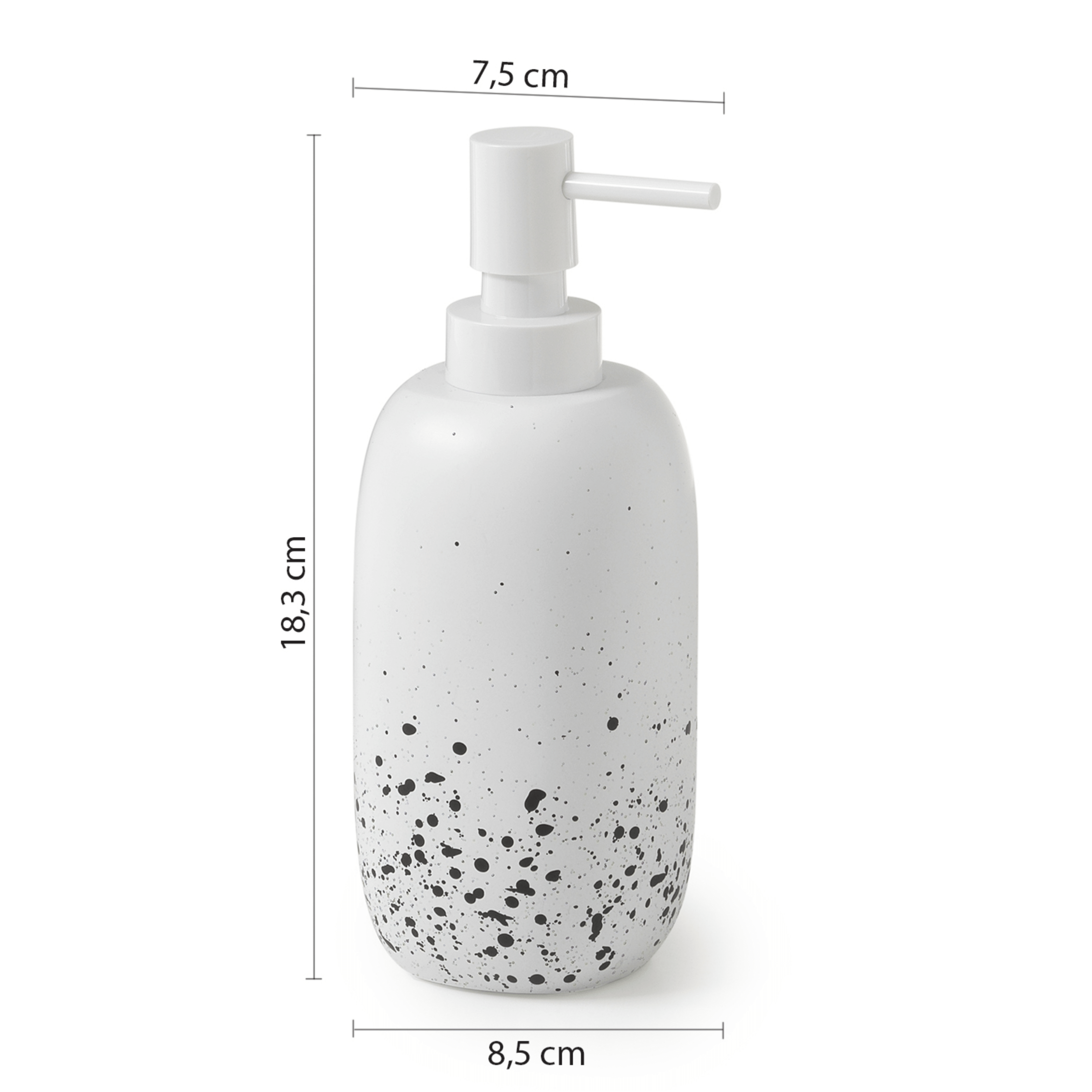 Questo portadispenser d’appoggio è realizzato in resina con erogatore in plastica dalla finitura bianco opaco, unendo praticità ed eleganza in un unico accessorio per il bagno. Pensato per l’utilizzo quotidiano, consente di dosare il sapone in modo semplice e controllato, contribuendo a mantenere il lavabo ordinato e funzionale. Il design sobrio e contemporaneo si integra facilmente in ambienti moderni, minimal o classici, mentre la struttura stabile assicura un appoggio sicuro su qualsiasi superficie. Le dimensioni di 8,5 cm di larghezza, 7,5 cm di profondità e 18,3 cm di altezza lo rendono compatto ma capiente, perfetto per un uso pratico ed elegante.