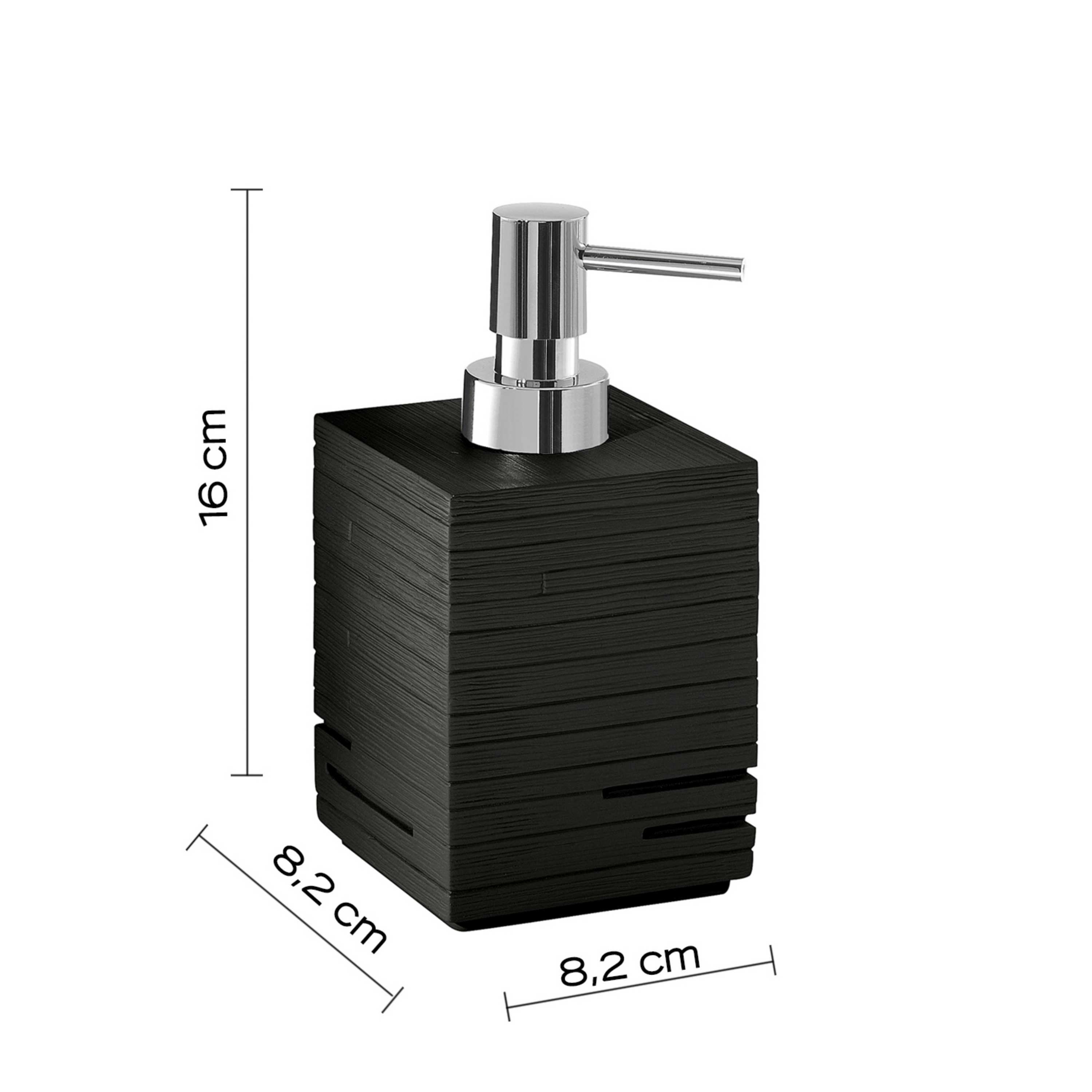 Questo portadispenser d’appoggio è realizzato in resina con finitura nero e si distingue per un design semplice ed elegante, ideale per completare l’arredo del bagno con uno stile pulito e senza tempo. Pensato per l’utilizzo quotidiano, consente di dosare il sapone in modo pratico e controllato, contribuendo a mantenere il lavabo ordinato e funzionale. La struttura compatta e stabile lo rende adatto a qualsiasi piano d’appoggio, integrandosi facilmente in ambienti bagno moderni, minimal o classici. Le dimensioni di 8,2 cm di larghezza, 8,2 cm di profondità e 16 cm di altezza lo rendono poco ingombrante ma capiente, perfetto per un utilizzo pratico ed equilibrato.