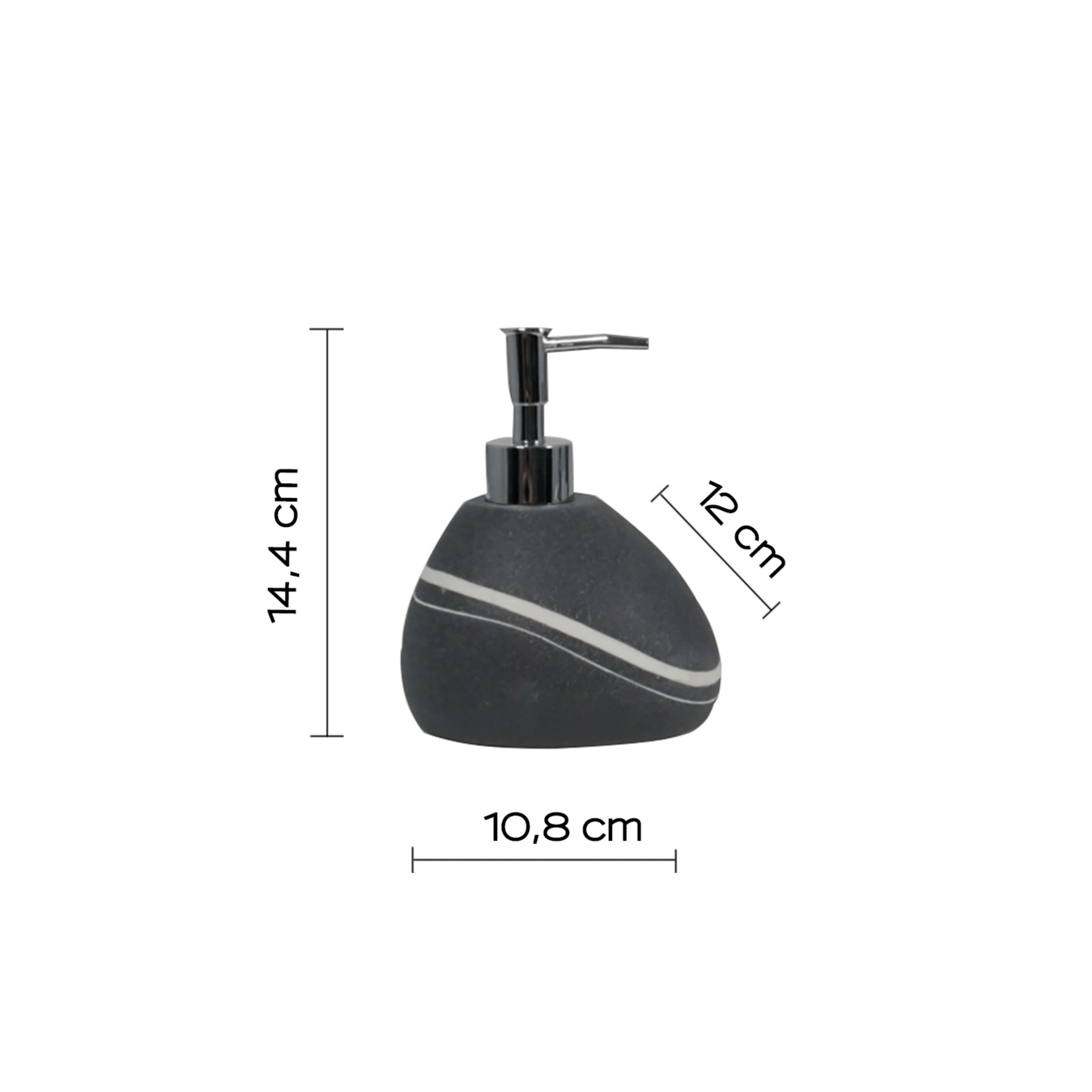 Questo portadispenser d’appoggio è realizzato in resina con base dalla finitura grigio e dotato di un erogatore in plastica con finitura cromata, combinazione che unisce eleganza e praticità in un unico accessorio per il bagno. Pensato per l’utilizzo quotidiano, permette di dosare il sapone in modo semplice e controllato, contribuendo a mantenere il lavabo ordinato e funzionale. Il design moderno e sobrio si integra armoniosamente in ambienti bagno contemporanei o minimalisti, mentre la struttura stabile garantisce un appoggio sicuro su qualsiasi superficie. Le dimensioni di 10,8 cm di larghezza, 12 cm di profondità e 14,4 cm di altezza lo rendono compatto ma capiente, perfetto per un utilizzo pratico ed elegante.
