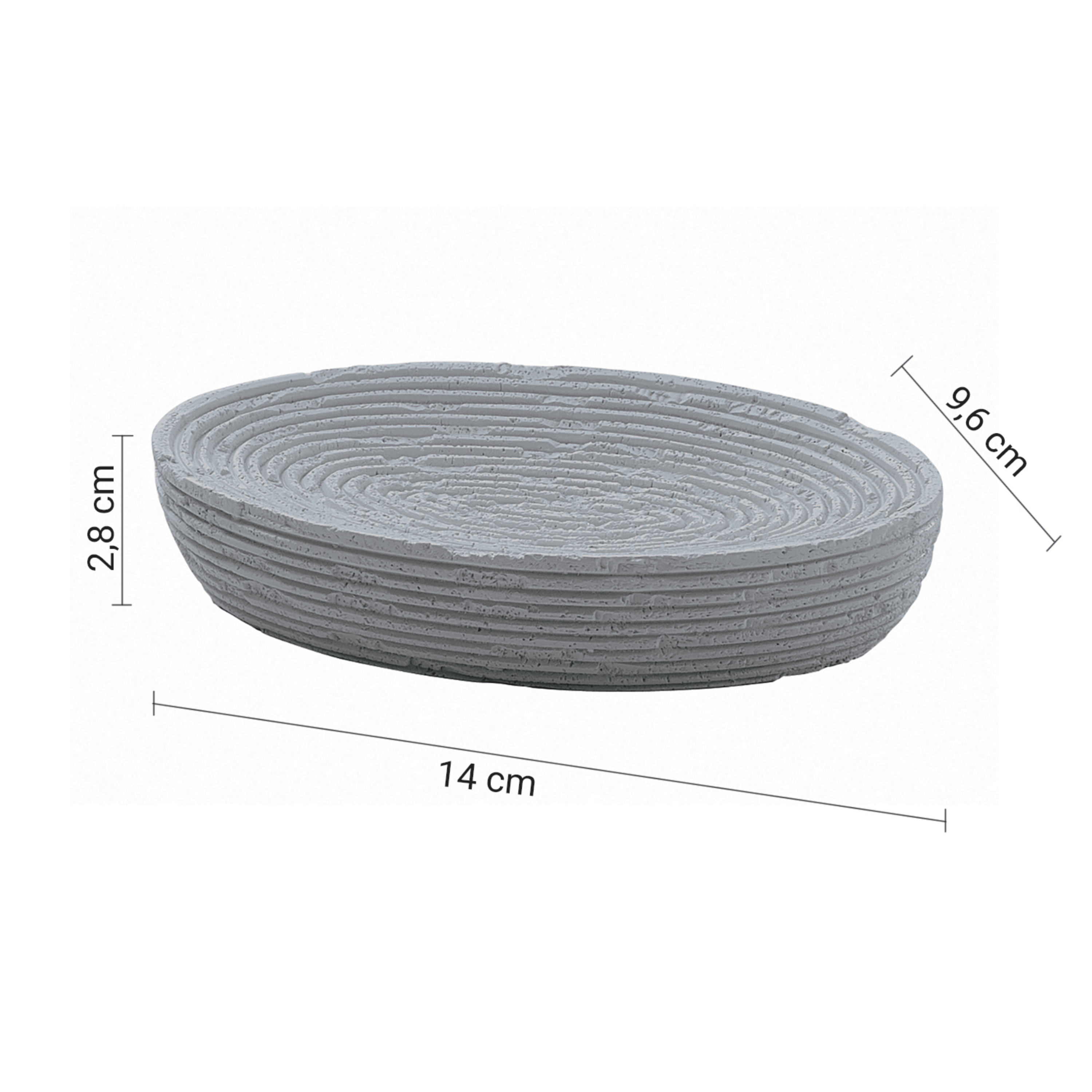 Questo portasapone è realizzato in resina con finitura grigio e presenta un design semplice ed elegante, ideale per completare l’arredo del bagno con uno stile pulito e luminoso. Pensato per l’uso quotidiano, permette di appoggiare il sapone in modo ordinato e igienico, contribuendo a mantenere il piano del lavabo sempre pulito e organizzato. La struttura compatta e stabile lo rende adatto a qualsiasi superficie d’appoggio, integrandosi armoniosamente in ambienti bagno moderni, minimal o classici. Le dimensioni di 14 cm di larghezza, 9,6 cm di profondità e 2,8 cm di altezza lo rendono pratico e poco ingombrante, perfetto per un utilizzo funzionale ed elegante.