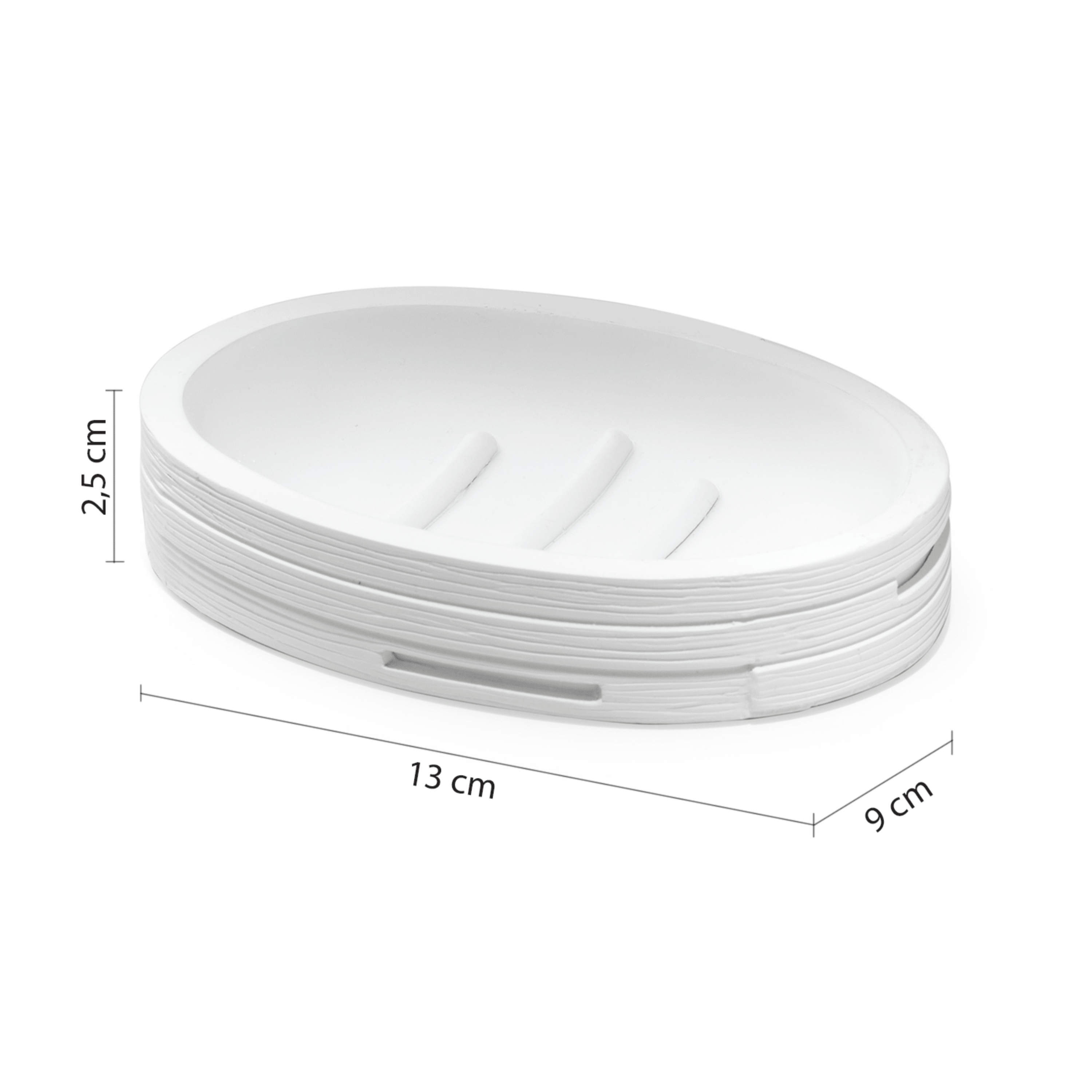Questo portasapone d’appoggio è realizzato in resina con finitura bianca e si caratterizza per un design semplice ed elegante, perfetto per completare l’arredo del bagno con uno stile pulito e luminoso. Pensato per l’uso quotidiano, permette di appoggiare il sapone in modo ordinato e igienico, contribuendo a mantenere il piano del lavabo sempre pulito e organizzato. La struttura compatta e stabile lo rende adatto a qualsiasi superficie d’appoggio, integrandosi armoniosamente in ambienti moderni, minimal o classici. Le dimensioni di 13 cm di larghezza, 9 cm di profondità e 2,5 cm di altezza lo rendono pratico e poco ingombrante, ideale per un utilizzo funzionale ed elegante.