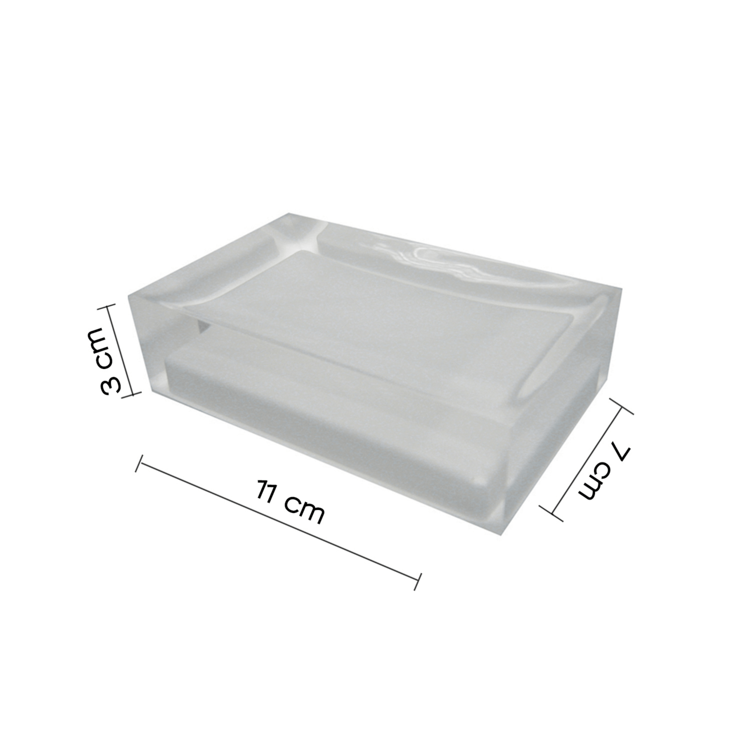 Questo portasapone è realizzato in resina con finitura bianca e presenta un design essenziale e luminoso, ideale per completare l’arredo del bagno con discrezione ed eleganza. Pensato per l’uso quotidiano, consente di appoggiare il sapone in modo ordinato e igienico, contribuendo a mantenere il piano del lavabo pulito e ben organizzato. La struttura compatta e stabile lo rende adatto a qualsiasi superficie d’appoggio, integrandosi armoniosamente in ambienti bagno moderni, minimal o classici. Le dimensioni di 11 cm di larghezza, 7 cm di profondità e 3 cm di altezza lo rendono pratico e poco ingombrante, perfetto per un utilizzo funzionale e raffinato.
