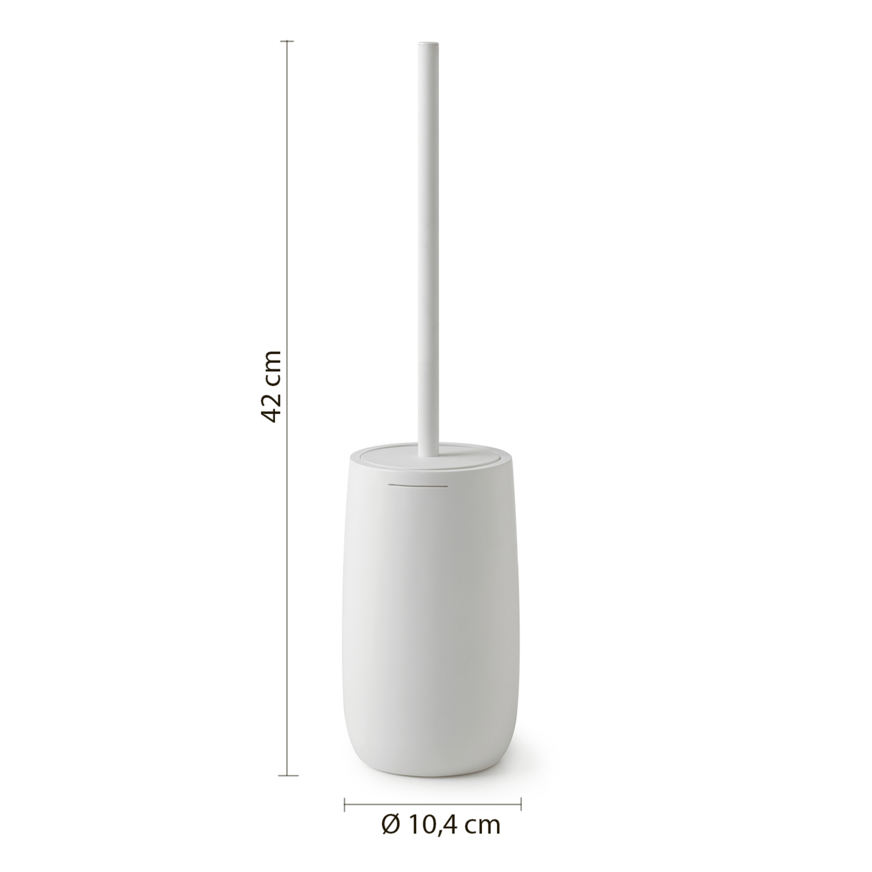 Questo portascopino da terra è realizzato in resina con finitura bianco opaco e si distingue per un design essenziale e contemporaneo, ideale per integrarsi con discrezione in qualsiasi ambiente bagno. Pensato per un utilizzo quotidiano, unisce funzionalità e sobria eleganza, contribuendo a mantenere ordine e igiene accanto al sanitario. La superficie opaca conferisce un aspetto raffinato e moderno, mentre la struttura stabile garantisce un appoggio sicuro a terra. Le dimensioni, con diametro di 10,4 cm e altezza di 42 cm, lo rendono ben proporzionato e poco ingombrante, perfetto per completare l’arredo bagno con un accessorio pratico e di stile.