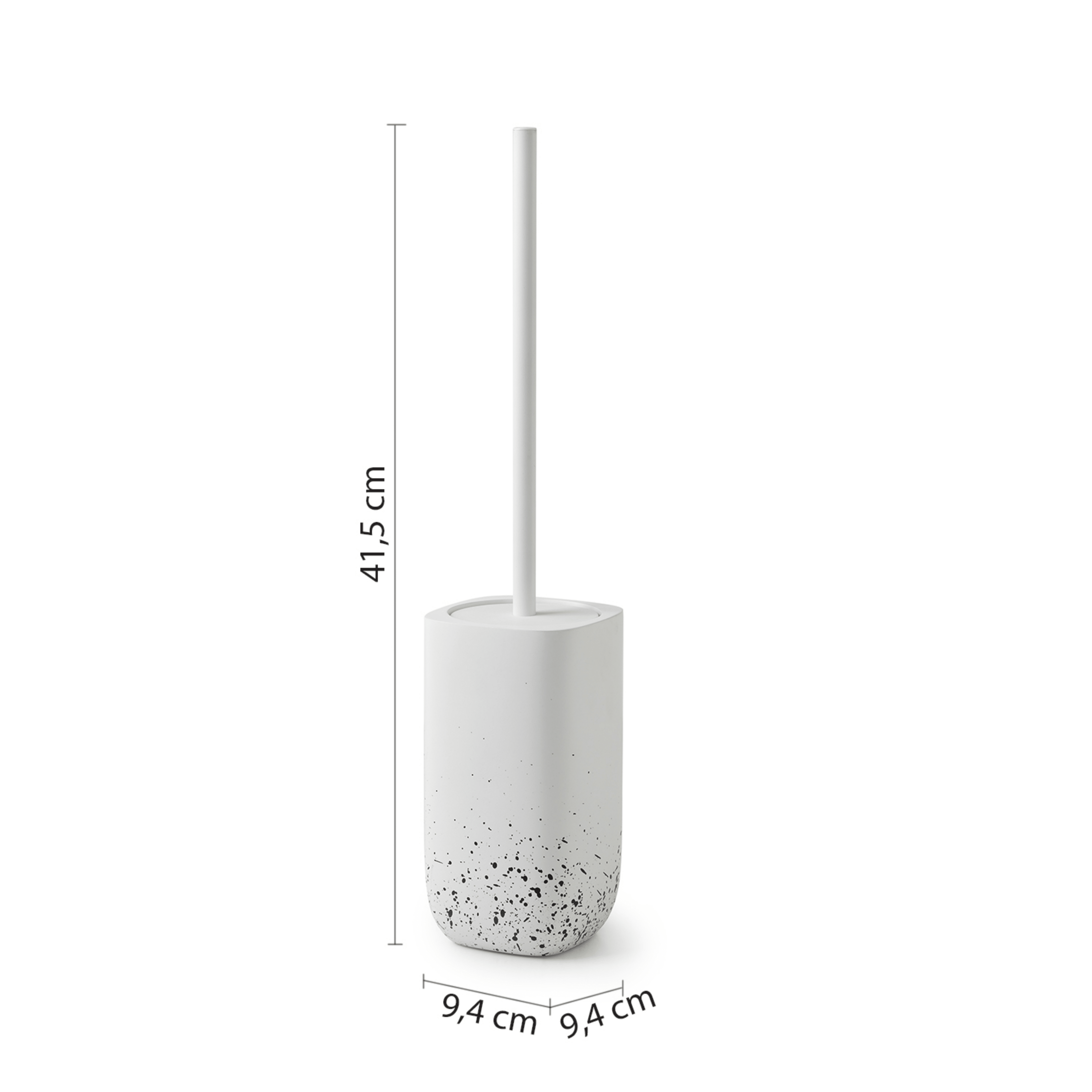 Questo portascopino da terra è realizzato in resina con finitura bianco opaco e si distingue per un design essenziale e moderno, ideale per integrarsi con discrezione in qualsiasi ambiente bagno. Pensato per un utilizzo quotidiano, unisce funzionalità e sobria eleganza, contribuendo a mantenere ordine e igiene accanto al sanitario. La struttura stabile garantisce un appoggio sicuro a terra, mentre le dimensioni di 9,4 cm di larghezza, 9,4 cm di profondità e 41,5 cm di altezza lo rendono proporzionato e poco ingombrante, perfetto per completare l’arredo bagno con un accessorio pratico e raffinato.
