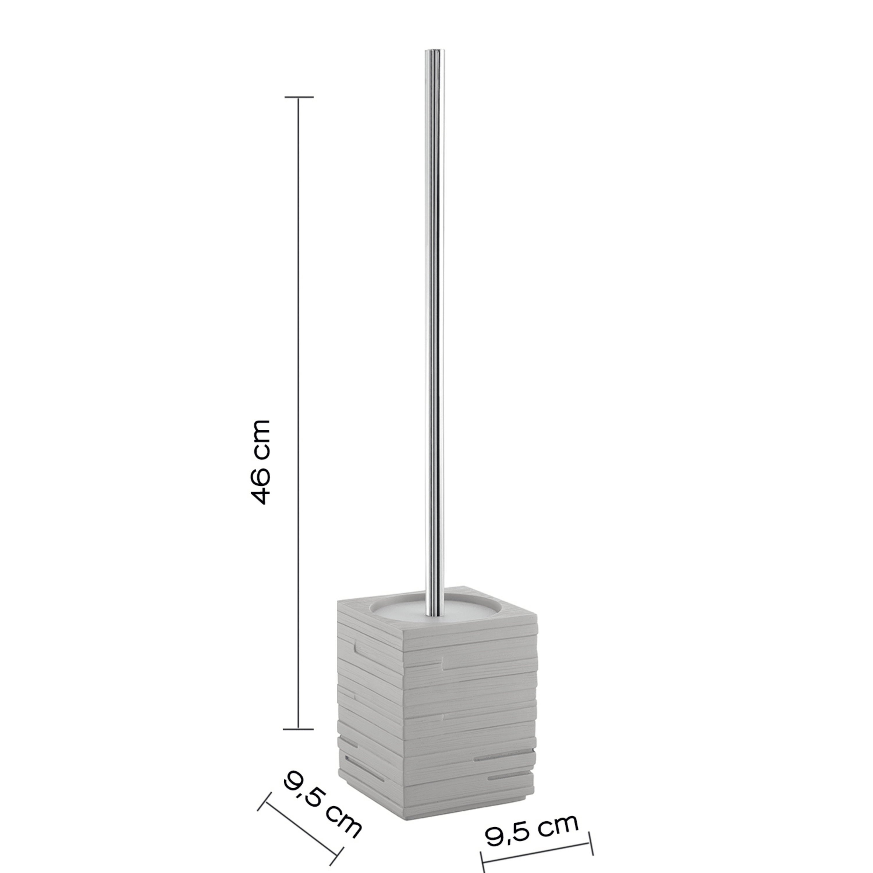 Questo portascopino da terra è realizzato in resina con finitura grigio e presenta un design essenziale e luminoso, ideale per integrarsi con discrezione in qualsiasi ambiente bagno. Pensato per un utilizzo quotidiano, unisce funzionalità e semplicità, contribuendo a mantenere ordine e igiene accanto al sanitario. La struttura stabile garantisce un appoggio sicuro a terra, mentre la forma slanciata consente di inserirlo facilmente anche in spazi ridotti senza risultare ingombrante. Le dimensioni di 9,5 cm di larghezza, 9,5 cm di profondità e 46 cm di altezza lo rendono ben proporzionato e funzionale, perfetto per completare l’arredo bagno con un accessorio pratico e discreto.