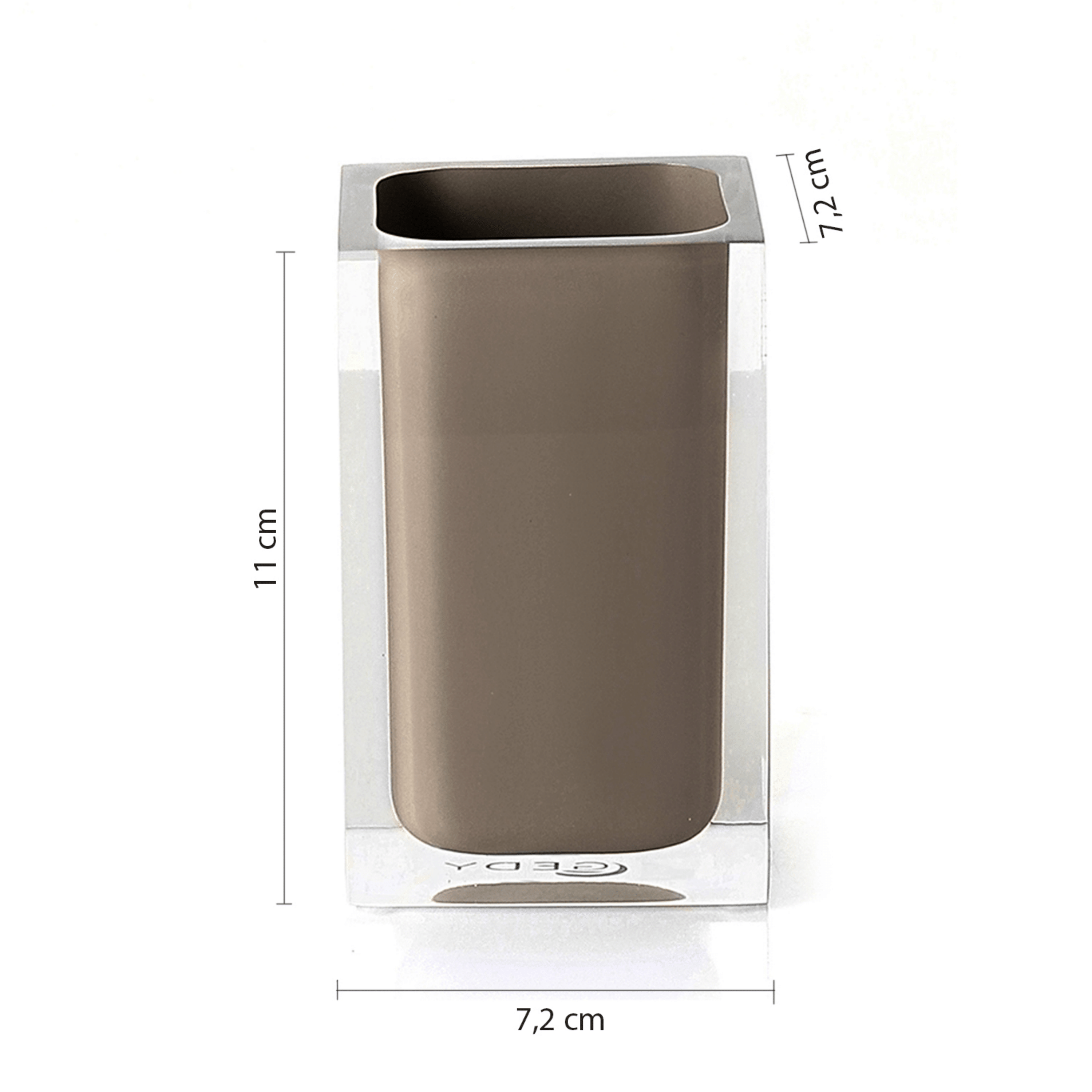 Questo portaspazzolino d’appoggio è realizzato in resina con finitura tortora e si caratterizza per un design semplice ed essenziale, ideale per completare l’arredo del bagno con uno stile pulito e senza tempo. Pensato per mantenere gli spazzolini ordinati e sempre a portata di mano, contribuisce a migliorare l’organizzazione del lavabo e a garantire un utilizzo quotidiano pratico e igienico. La struttura compatta e stabile lo rende adatto a qualsiasi piano d’appoggio, integrandosi armoniosamente in ambienti bagno moderni, minimal o classici. Le dimensioni di 7,2 cm di larghezza, 7,2 cm di profondità e 11 cm di altezza lo rendono funzionale e poco ingombrante, perfetto per ottimizzare lo spazio con discrezione ed eleganza.