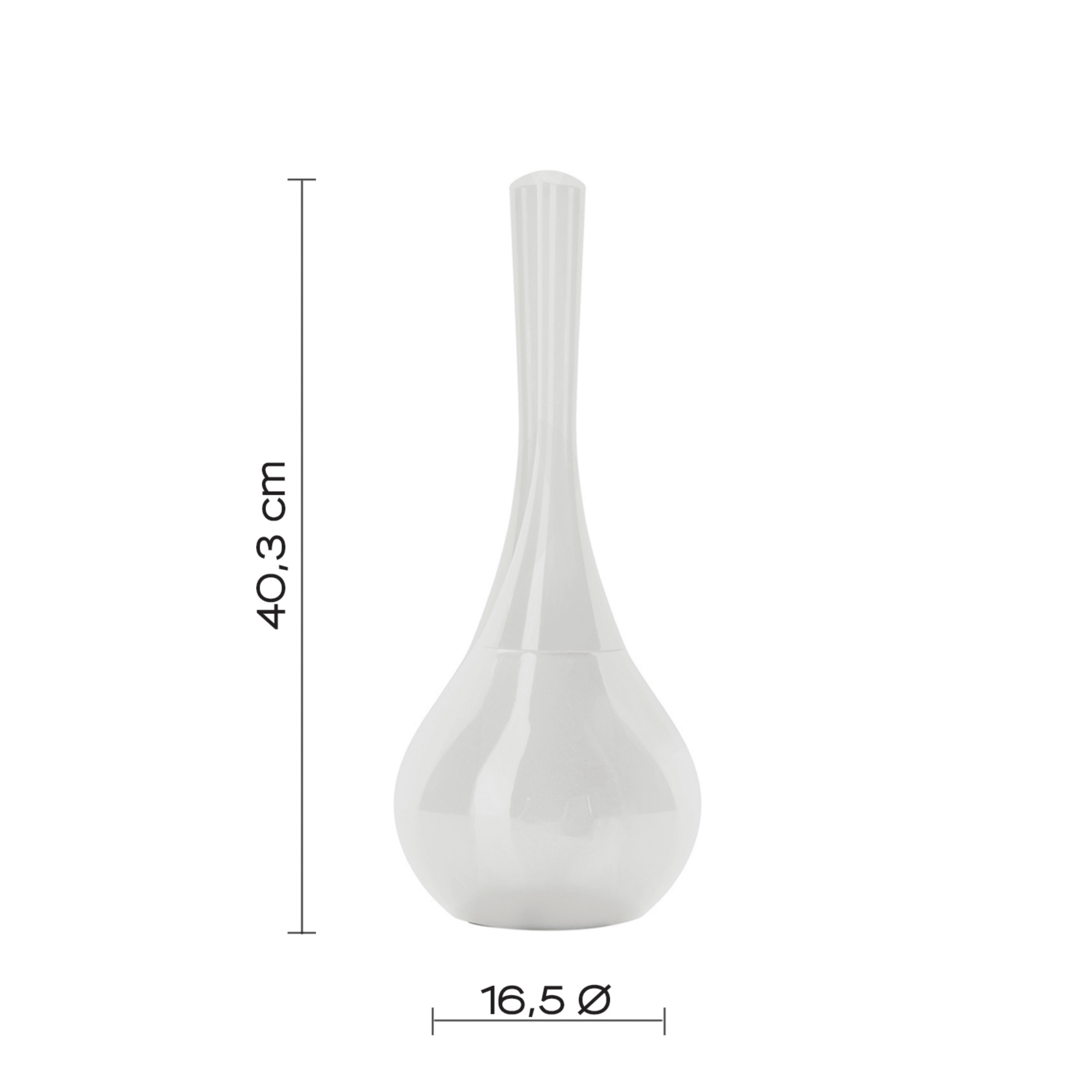 Il portascopino in ceramica con finitura bianco si distingue per la sua estetica pulita e senza tempo, trasformando un accessorio funzionale in un dettaglio di design elegante e raffinato. La superficie bianca, luminosa e impeccabile, dona al bagno un senso di ordine e purezza, adattandosi con naturalezza sia agli ambienti moderni sia a quelli più classici.Con un diametro di 16,5 cm e un’altezza di 40,3 cm, la sua struttura solida e proporzionata garantisce stabilità e praticità nell’uso quotidiano, mantenendo al tempo stesso un impatto visivo armonioso. La ceramica assicura resistenza e durata, mentre il ciuffo in setole completa la funzionalità del prodotto.