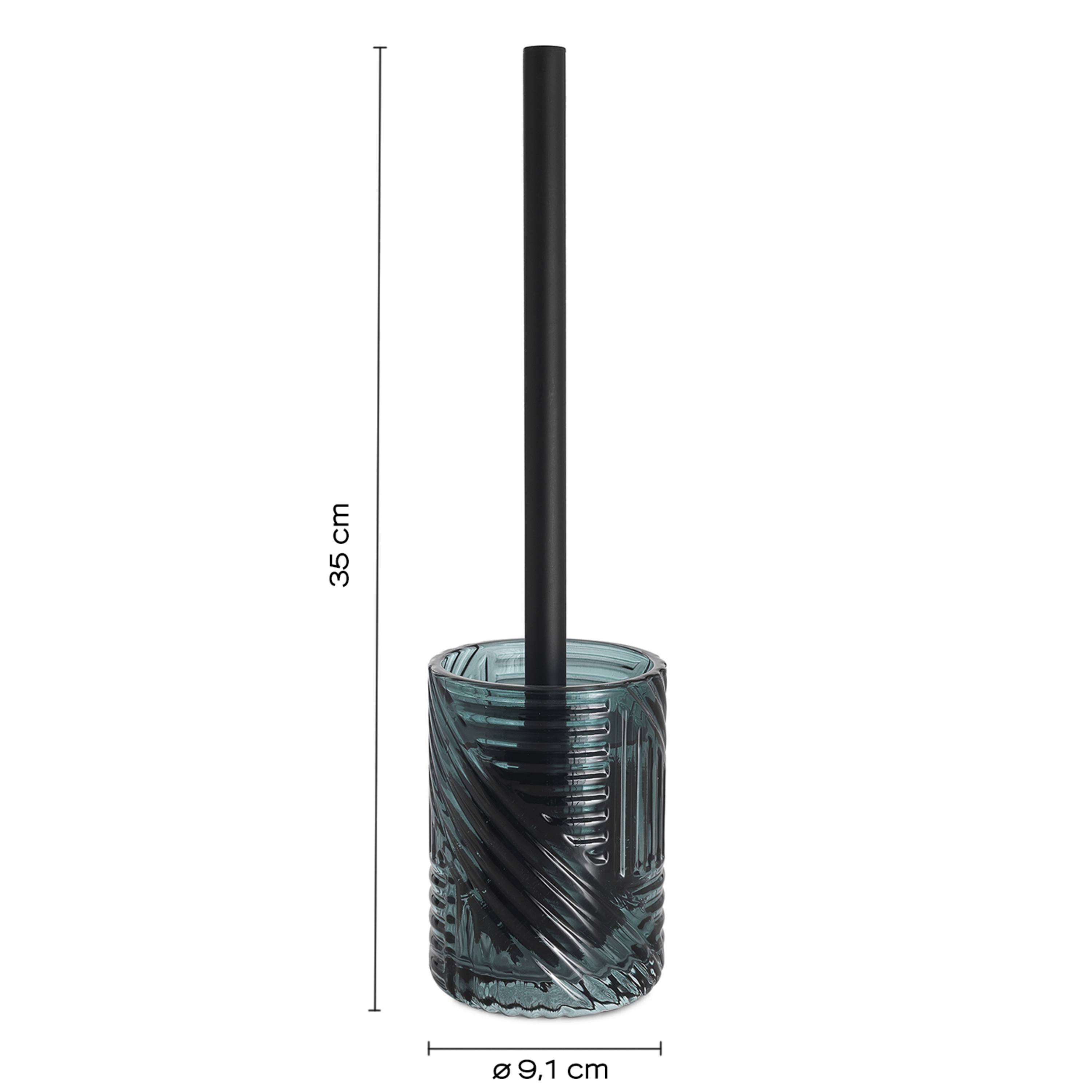 Il portascopino a terra in vetro e silicone con finitura verde unisce trasparenze moderne e tonalità sofisticate, trasformando un accessorio funzionale in un elemento di design contemporaneo. Il vetro, luminoso e raffinato, si fonde con il silicone fumé creando un equilibrio armonioso tra leggerezza visiva e carattere, mentre il ciuffo in setole garantisce efficacia e praticità nell’uso quotidiano.Con un diametro di 9,1 cm e un’altezza di 35 cm, presenta una struttura compatta e slanciata, studiata per offrire stabilità e facilità di utilizzo. La combinazione dei materiali assicura resistenza, igiene e un’estetica distintiva, rendendo questo portascopino un complemento elegante e funzionale per qualsiasi ambiente bagno.