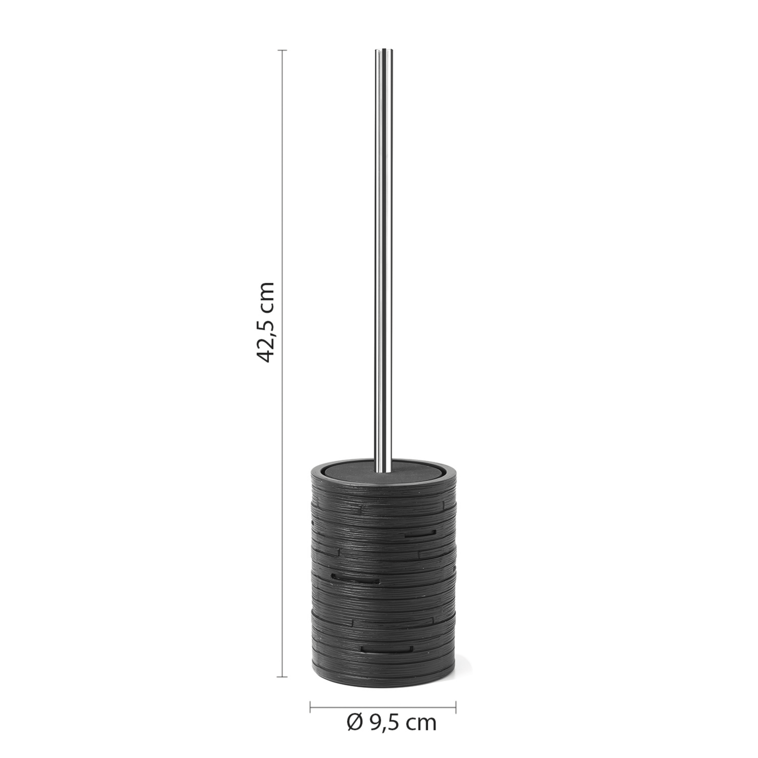 Questo portascopino da terra è realizzato in resina con finitura nero e si distingue per un design semplice ed essenziale, ideale per integrarsi con discrezione in qualsiasi ambiente bagno. Pensato per un utilizzo quotidiano, unisce funzionalità e sobria eleganza, contribuendo a mantenere ordine e igiene accanto al sanitario. La struttura stabile garantisce un appoggio sicuro a terra, mentre le dimensioni, con diametro di 9,5 cm e altezza di 42,5 cm, lo rendono proporzionato e poco ingombrante. Perfetto per completare l’arredo bagno con un accessorio pratico, discreto ed elegante.