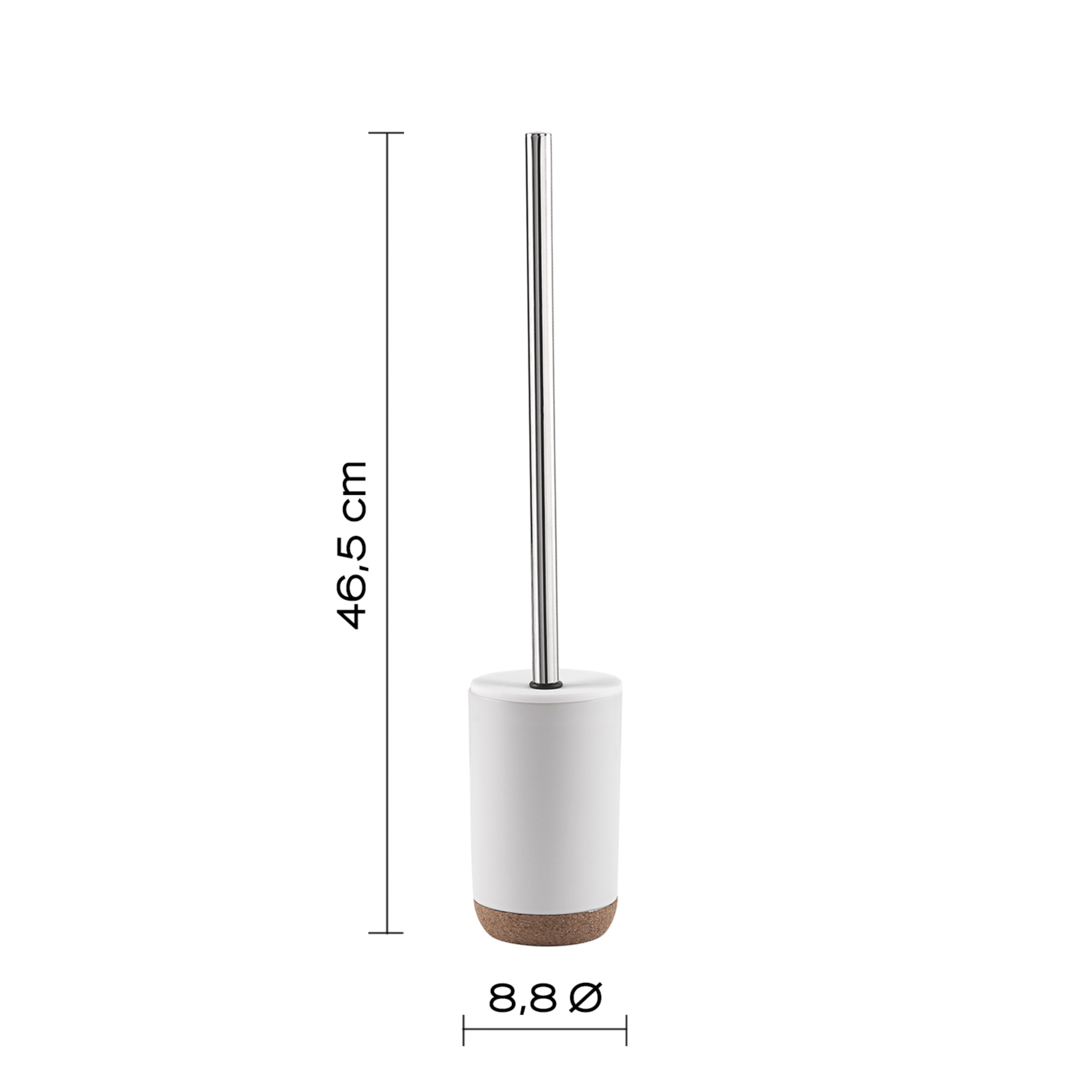 Portascopino a terra realizzato in ceramica e sughero, completo di ciuffo in setole resistenti, perfetto per mantenere il bagno ordinato con stile naturale. Le dimensioni del prodotto sono diametro 8,8 cm e altezza 46,5 cm, ideali per adattarsi a qualsiasi spazio senza ingombro e con un design elegante e funzionale.