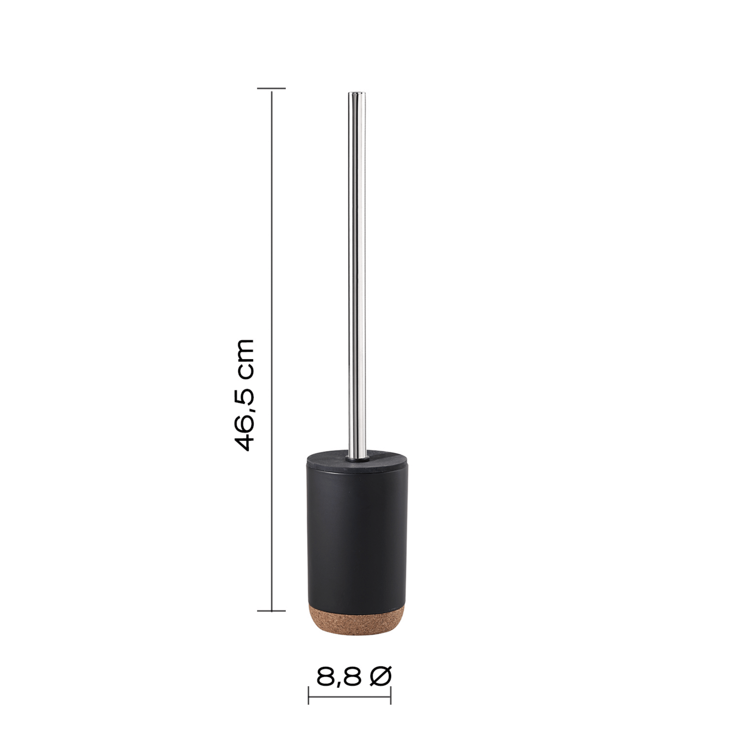 Portascopino a terra realizzato in ceramica e sughero, completo di ciuffo in setole resistenti, perfetto per mantenere il bagno ordinato con stile naturale. Le dimensioni del prodotto sono diametro 8,8 cm e altezza 46,5 cm, ideali per adattarsi a qualsiasi spazio senza ingombro e con un design elegante e funzionale.
