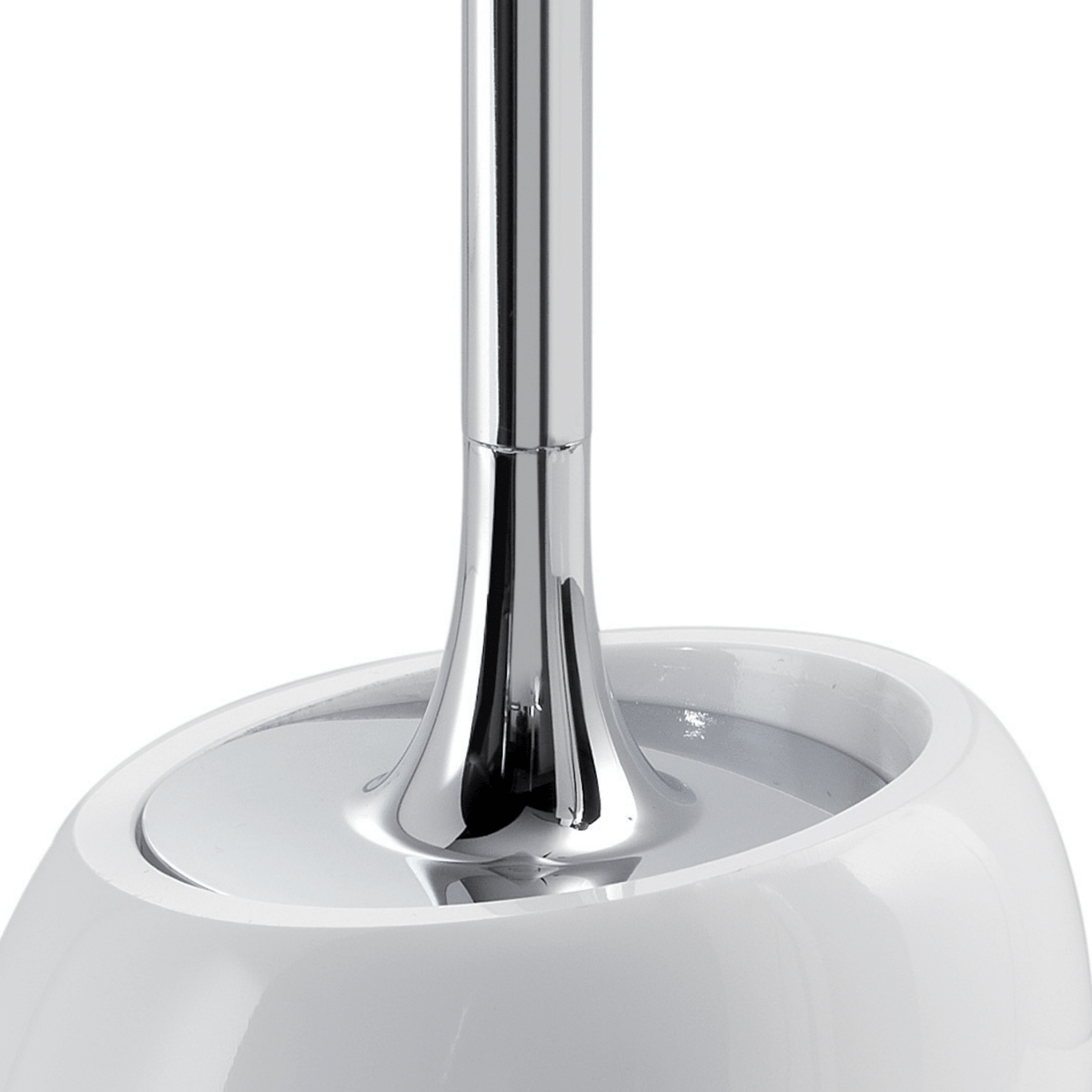 Portascopino da appoggio realizzato in resina e sabbia, materiali che conferiscono solidità, stabilità e una piacevole texture naturale. La finitura bianco lucido dona luminosità e un aspetto pulito e contemporaneo, ideale per ambienti bagno moderni e minimalisti. Il ciuffo in setole assicura un utilizzo pratico ed efficace, mantenendo l’accessorio funzionale oltre che esteticamente curato.Le dimensioni — lunghezza 11,8 cm, profondità 11,5 cm e altezza 46,2 cm — definiscono una struttura slanciata ma stabile, pensata per occupare poco spazio mantenendo un aspetto elegante e discreto.Un complemento indispensabile che completa con coerenza la collezione coordinata in resina e sabbia.