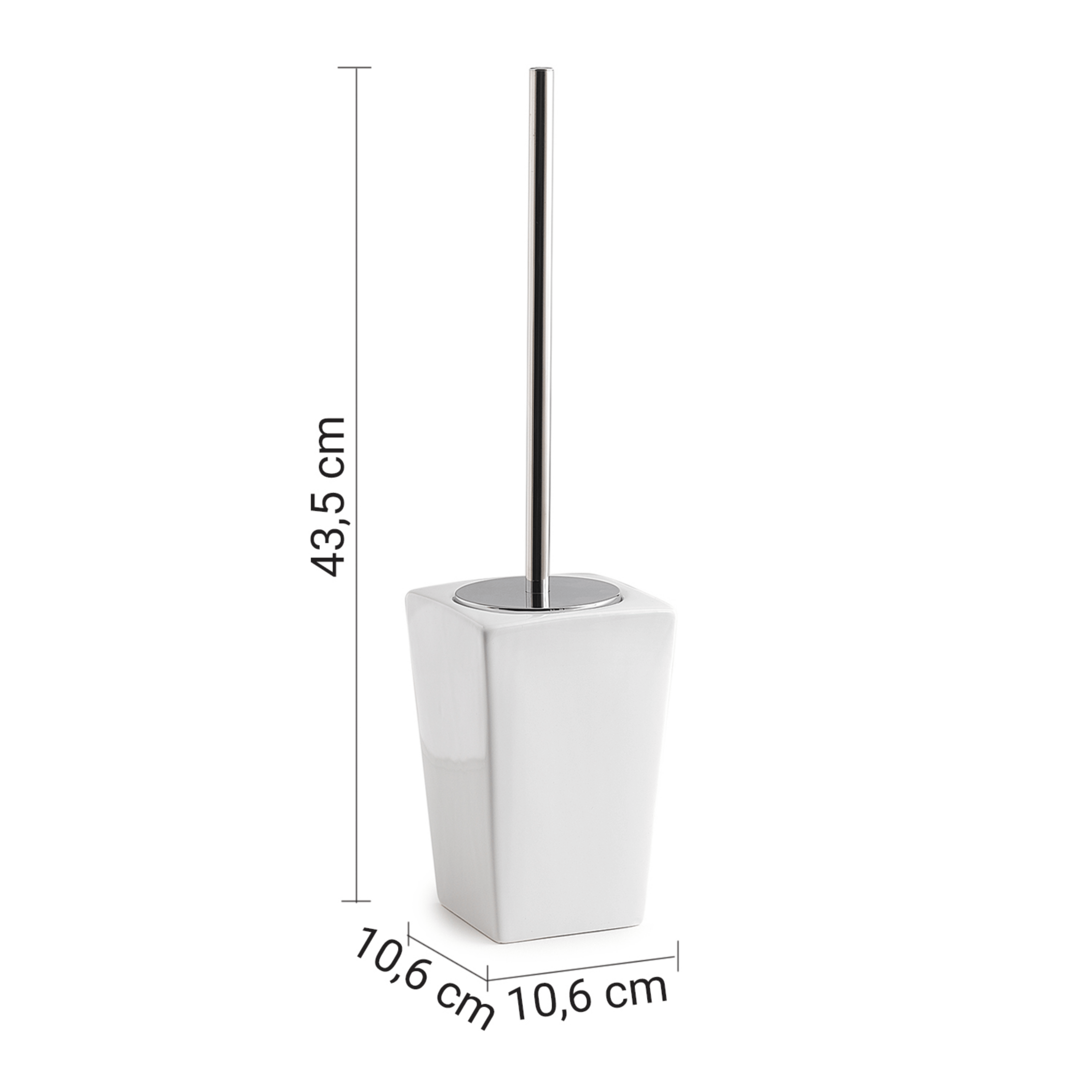 Il portascopino a terra in ceramica con finitura bianco unisce semplicità e raffinatezza, trasformando un accessorio funzionale in un elemento di design essenziale. La superficie bianca, luminosa e senza tempo, dona al bagno un senso di ordine e pulizia, adattandosi con naturalezza sia agli ambienti moderni sia a quelli più classici.Con dimensioni di 10,6 cm di larghezza, 10,6 cm di profondità e 43,5 cm di altezza, presenta una struttura compatta e slanciata, studiata per garantire stabilità e praticità nell’uso quotidiano. La ceramica assicura resistenza e durata, rendendo questo portascopino un complemento discreto ma elegante, ideale per arricchire l’ambiente bagno con sobrietà e stile.