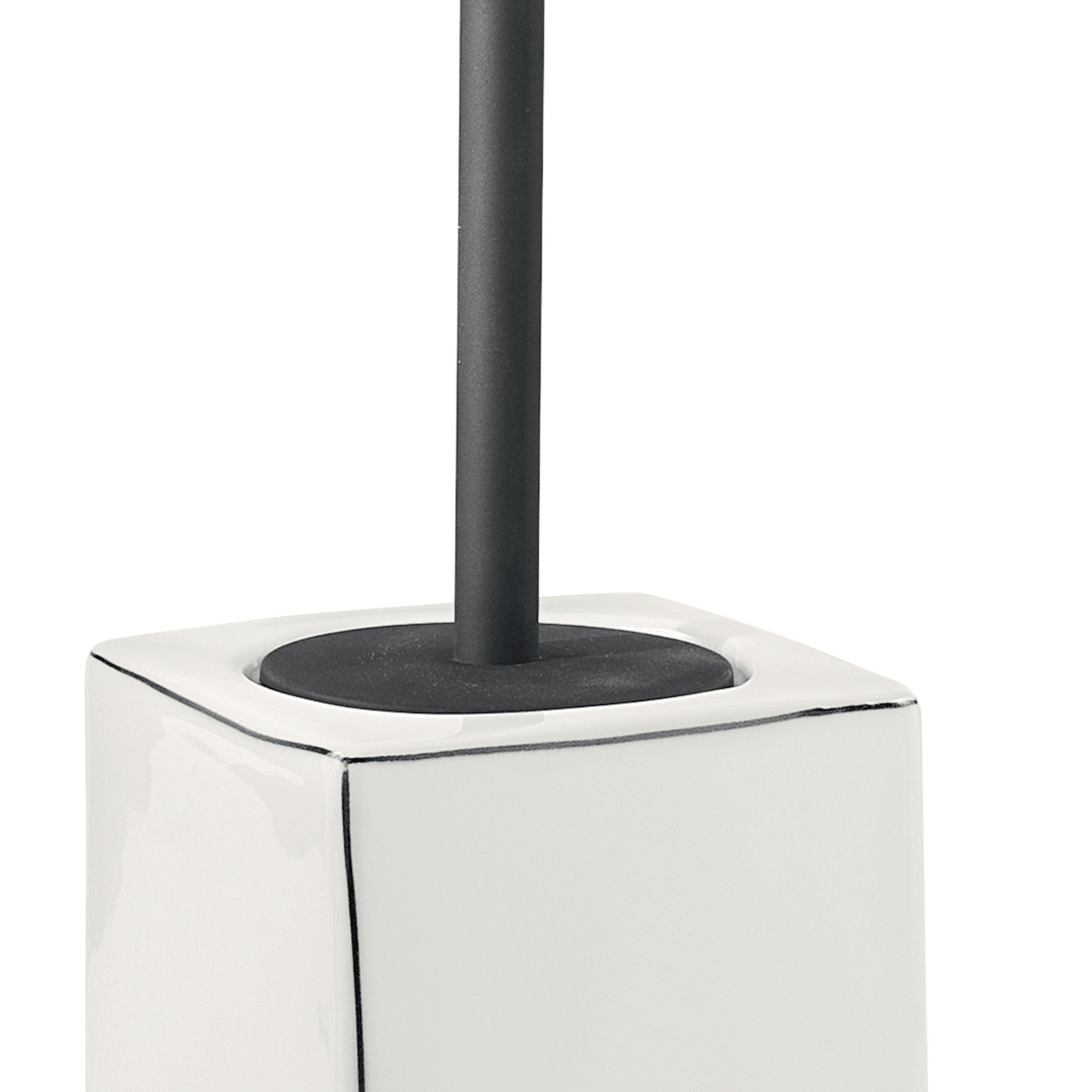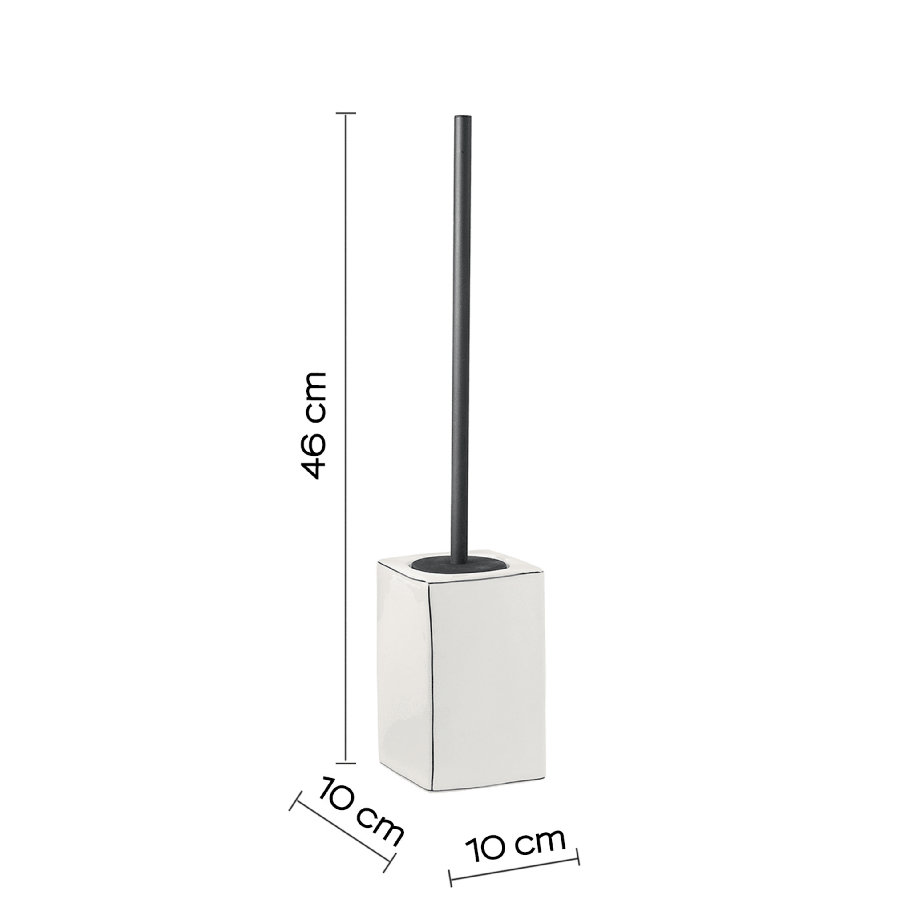 Portascopino da terra in ceramica, con elegante finitura bianca. Dotato di scopino con ciuffo in setole resistenti, ideale per l’uso quotidiano.