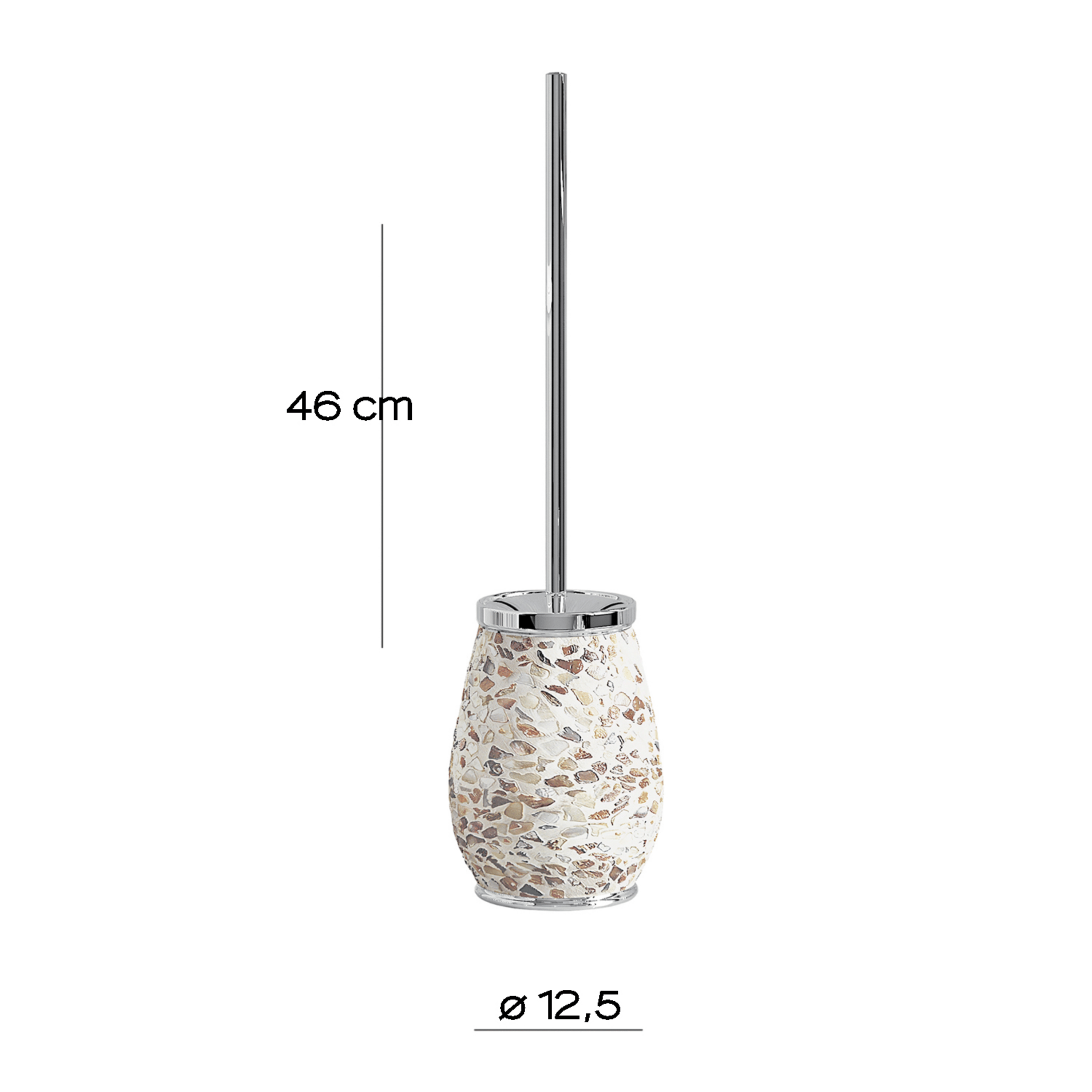 Il portascopino a terra in ceramica e madreperla con finitura crema si distingue per la sua eleganza delicata e luminosa, trasformando un accessorio funzionale in un dettaglio di design prezioso. La ceramica garantisce solidità e durata, mentre la madreperla, con i suoi riflessi naturali e cangianti, aggiunge un tocco di raffinatezza che impreziosisce l’ambiente bagno. La finitura crema, sobria e armoniosa, esalta la sensazione di purezza e calore, rendendo questo complemento perfetto per spazi contemporanei o classici.Con un diametro di 12,5 cm e un’altezza di 46 cm, la sua struttura slanciata e proporzionata è studiata per garantire stabilità e praticità, offrendo al tempo stesso un impatto visivo equilibrato. Non si limita a svolgere la sua funzione quotidiana, ma diventa un elemento capace di arricchire l’ambiente con un’eleganza discreta e sofisticata.