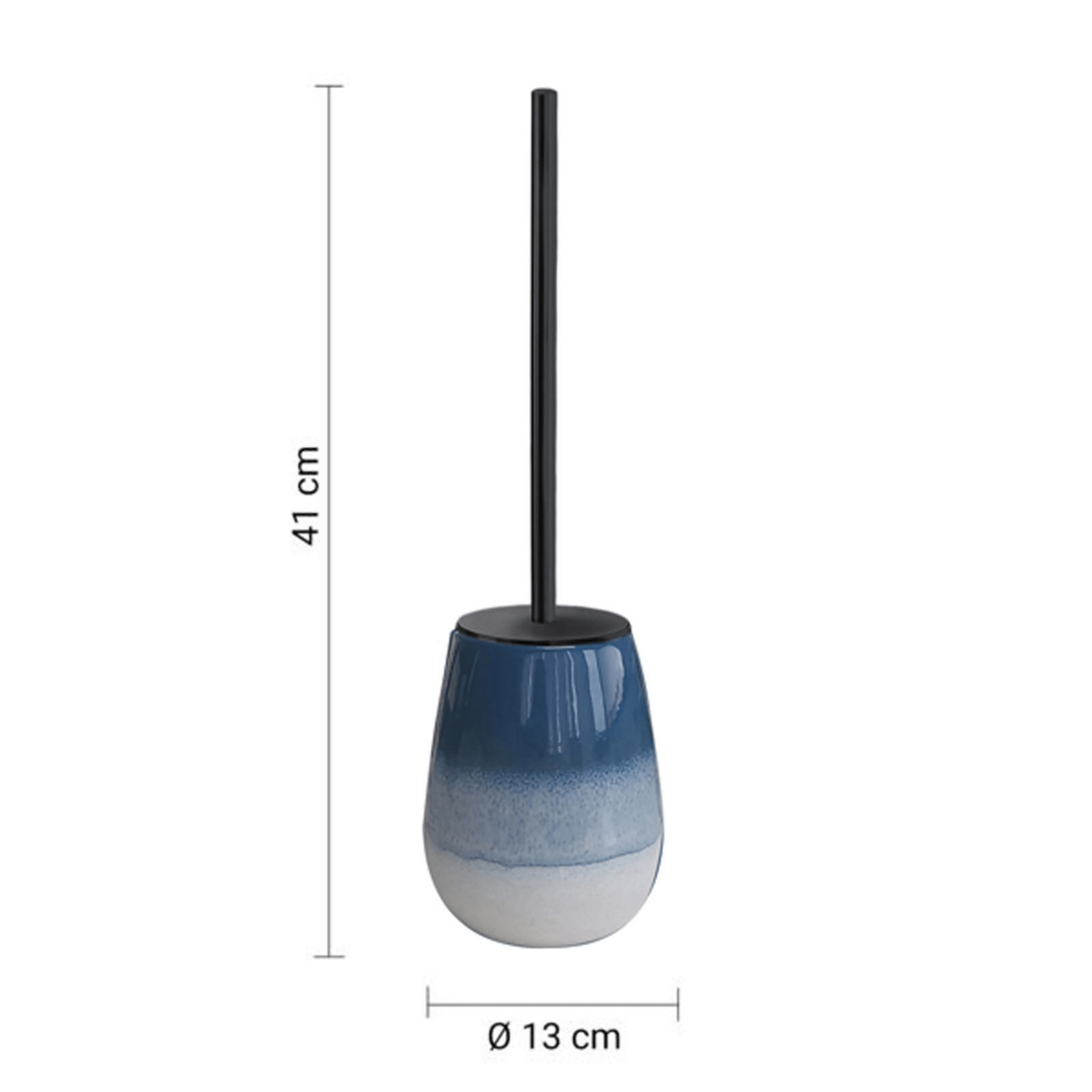Portascopino a terra realizzato in ceramica con finitura blu. Dal design essenziale e contemporaneo, unisce funzionalità ed estetica, aggiungendo un tocco di colore all’ambiente bagno. Le dimensioni del prodotto sono diametro 13 cm e altezza 41 cm, ideali per garantire stabilità e praticità nell’uso quotidiano.