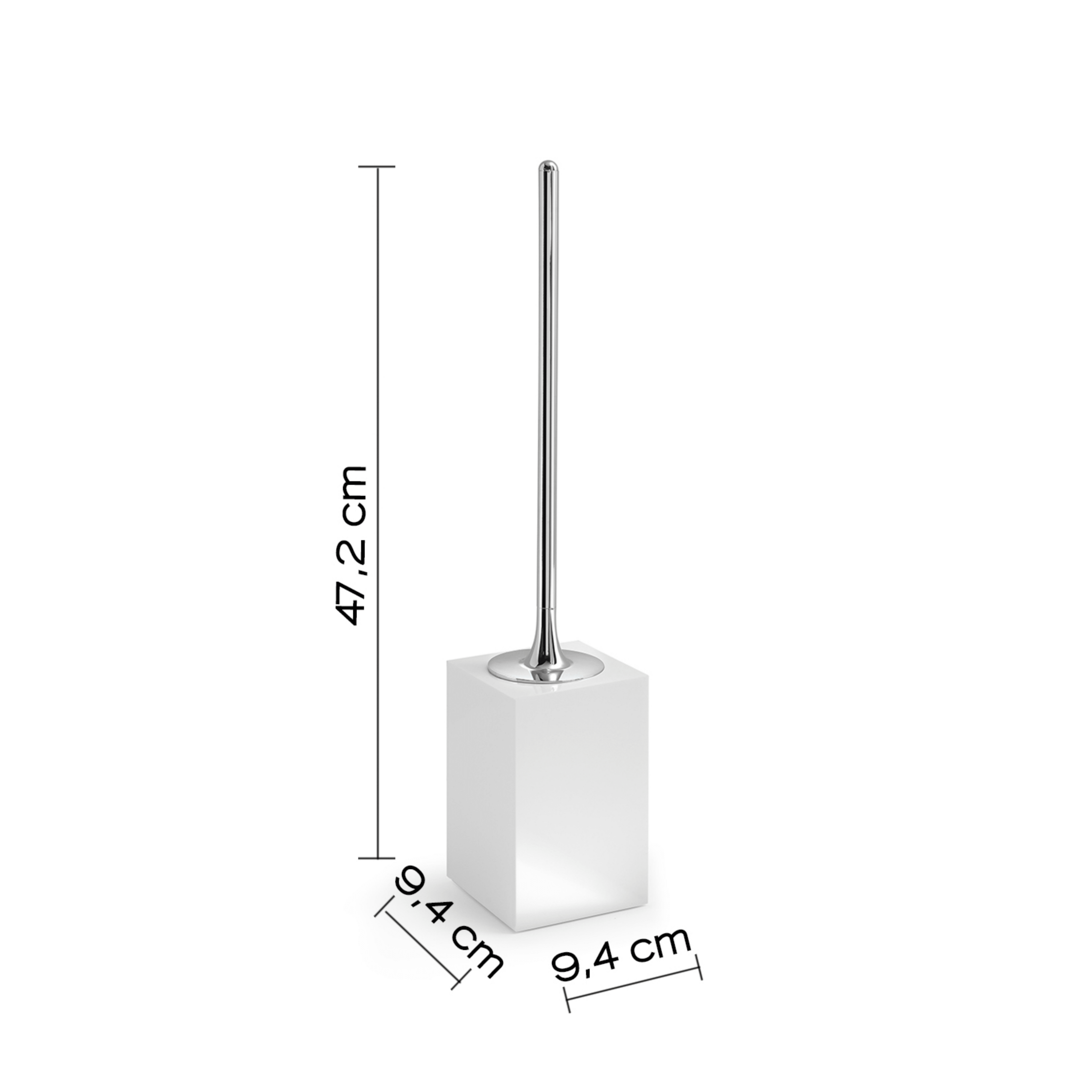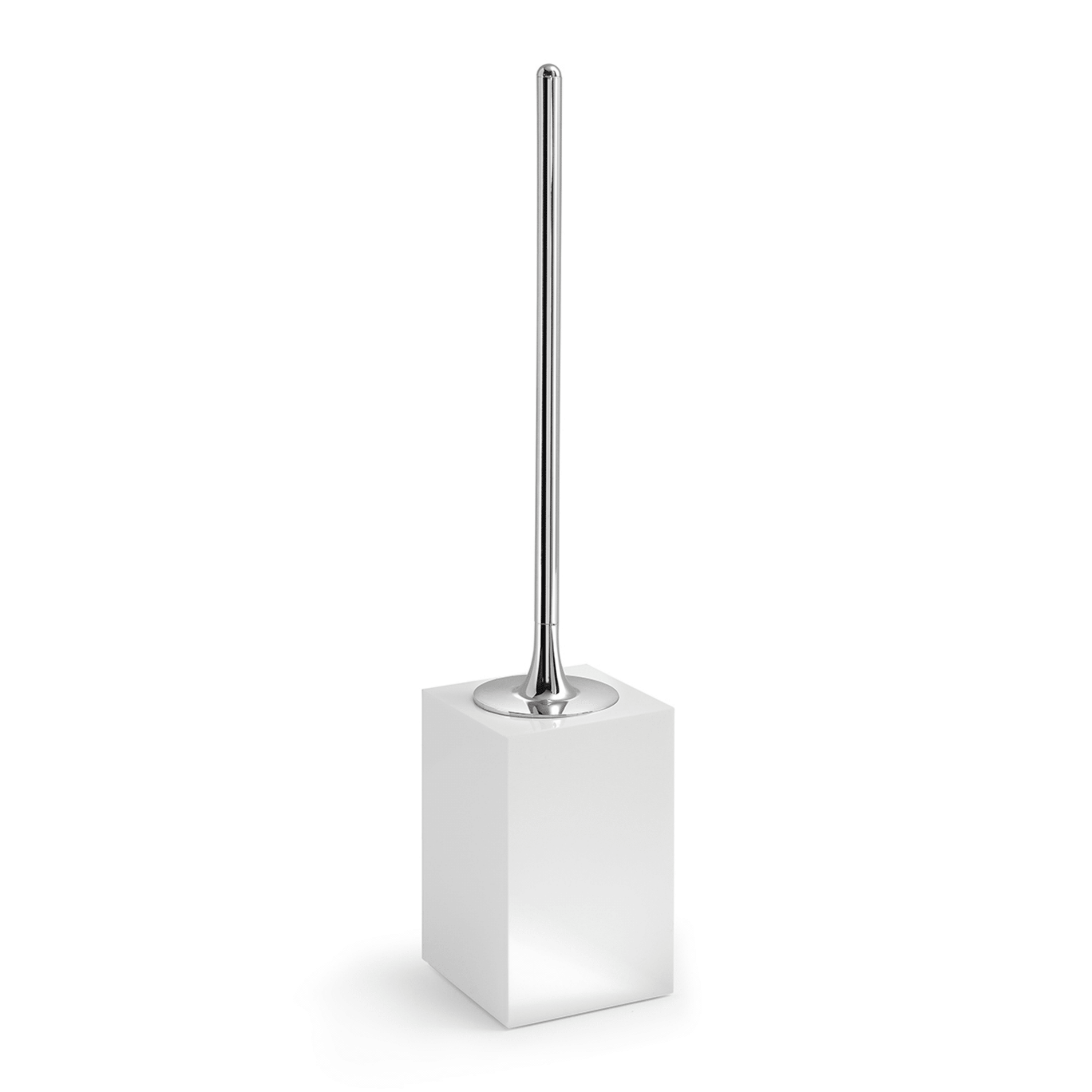Portascopino a terra realizzato in resina e sabbia, materiali che garantiscono solidità, stabilità e una piacevole texture naturale. La finitura bianco lucido dona luminosità e un’estetica pulita e contemporanea, ideale per bagni moderni e minimalisti. Il ciuffo in setole assicura un utilizzo pratico ed efficace, mantenendo l’accessorio funzionale oltre che visivamente curato.Le dimensioni — lunghezza 9,3 cm, profondità 9,3 cm e altezza 43,7 cm — definiscono una struttura compatta e slanciata, pensata per occupare poco spazio mantenendo un aspetto elegante e discreto.Un complemento indispensabile che completa con coerenza la collezione coordinata in resina e sabbia.