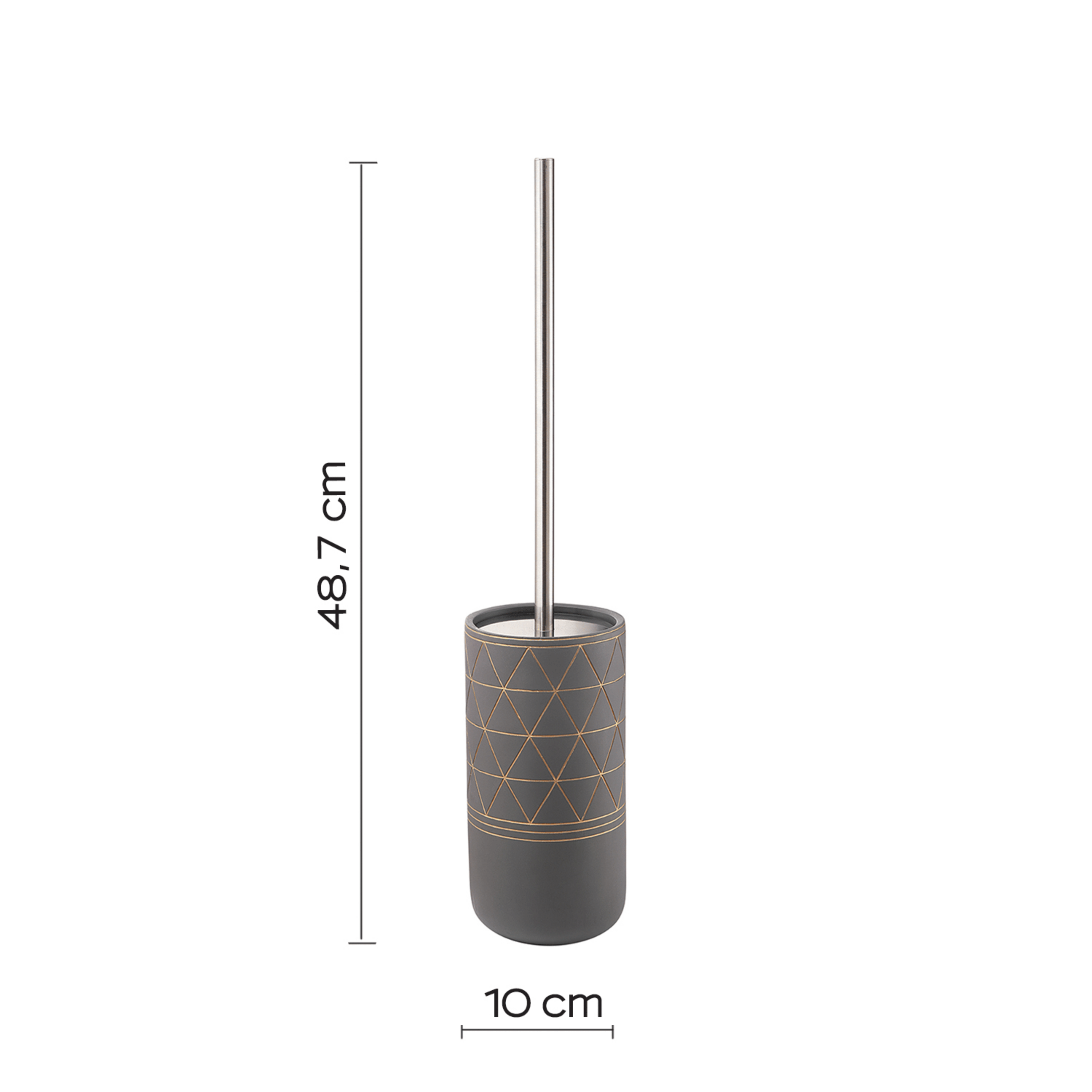 Il portascopino in cemento con ciuffo in setole si distingue per la sua estetica sobria e contemporanea, trasformando un accessorio funzionale in un elemento di design capace di arricchire l’ambiente bagno. La finitura cemento, uniforme e materica, richiama l’eleganza delle superfici industriali e si inserisce con naturalezza in contesti moderni e minimalisti, conferendo un senso di ordine e pulizia. Con un diametro di 10 cm e un’altezza di 48,7 cm, la sua struttura slanciata e proporzionata è studiata per garantire stabilità e praticità, offrendo al tempo stesso un impatto visivo armonioso. Il ciuffo in setole assicura efficacia e resistenza nell’uso quotidiano, mentre la scelta del cemento come materiale non è soltanto estetica: la sua solidità e durabilità rendono il portascopino un complemento affidabile e durevole. Questo oggetto non si limita a svolgere la sua funzione, ma diventa un dettaglio che contribuisce a definire l’identità del bagno con un tocco di eleganza discreta e contemporanea.