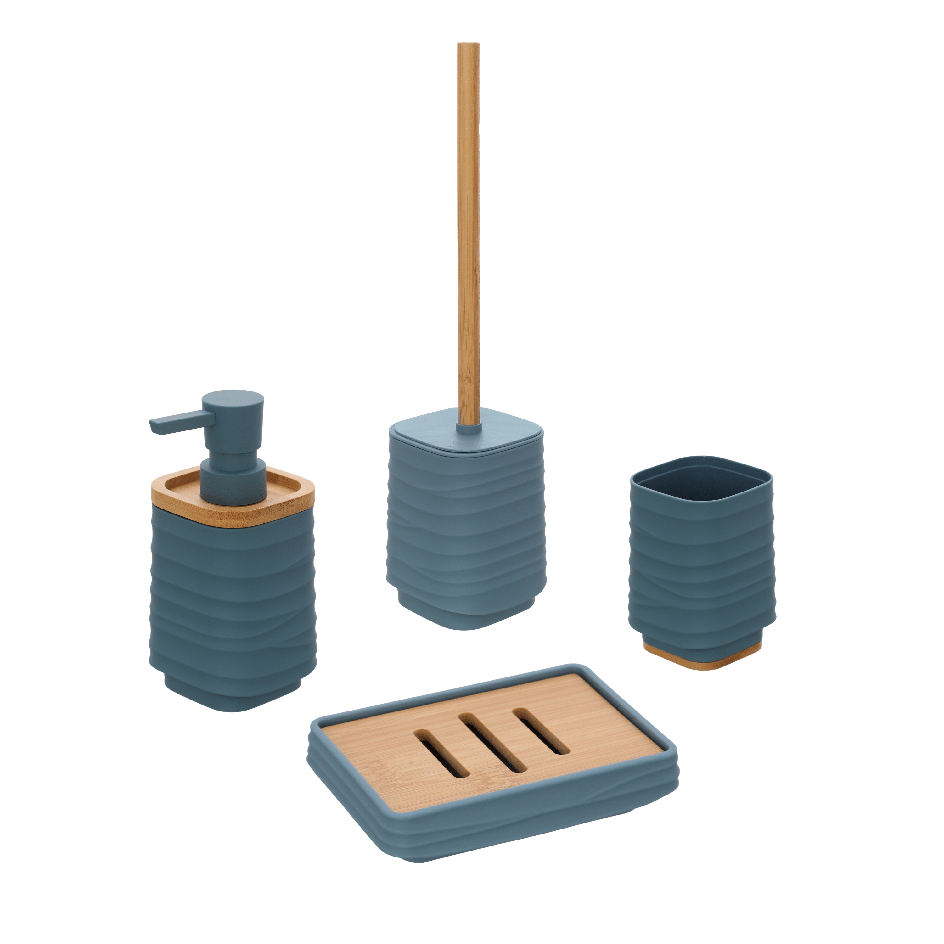 Il set di accessori è composto da quattro pezzi coordinati ed è pensato per offrire una soluzione completa e funzionale per l’organizzazione del bagno. Il set include un dispenser per il sapone, un portaspazzolino, un portasapone e un portascopino, elementi essenziali per mantenere ordine e praticità nella zona lavabo e WC. Tutti gli accessori sono realizzati in plastica con finitura nera, una scelta che dona un aspetto pulito e luminoso e permette un facile abbinamento con qualsiasi stile di arredo bagno. La plastica garantisce leggerezza, resistenza e facilità di pulizia, rendendo il set ideale per l’uso quotidiano. Nel complesso, questo set rappresenta una soluzione semplice e versatile per arredare il bagno in modo ordinato ed essenziale.