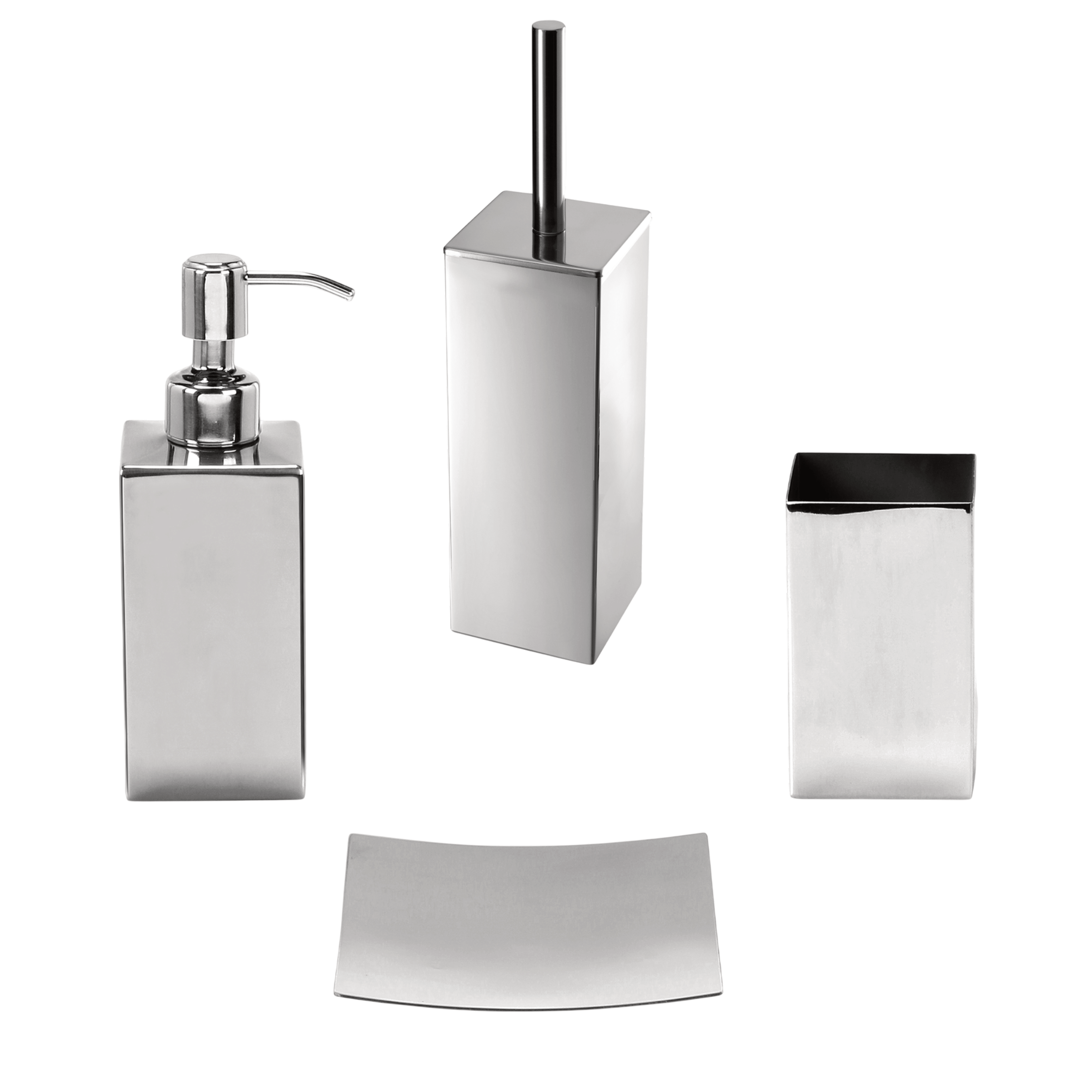Set di accessori d’appoggio dal design moderno e dal gusto naturale, pensato per rendere il piano del bagno funzionale e ordinato. Il set si presenta in elegante finitura cromo lucido con effetto specchiato, per un tocco di stile sofisticato e contemporaneo.