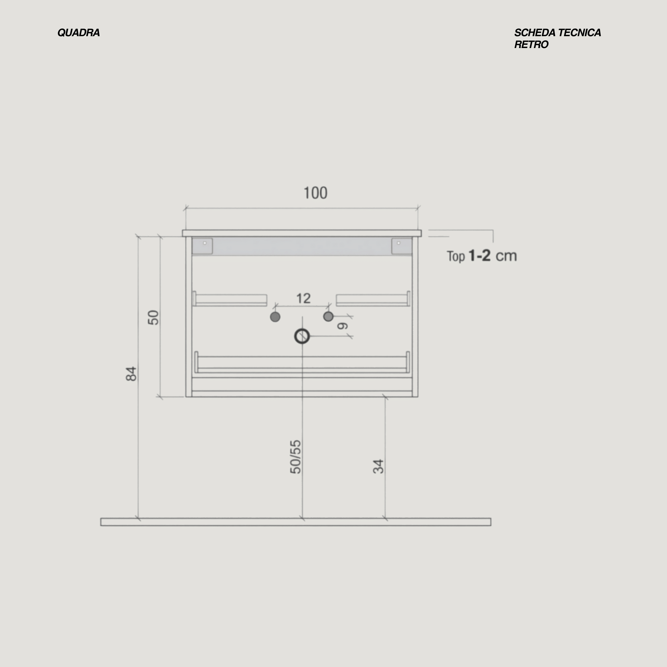- Misure base: L 120 x P 45 x H 50 (cm)