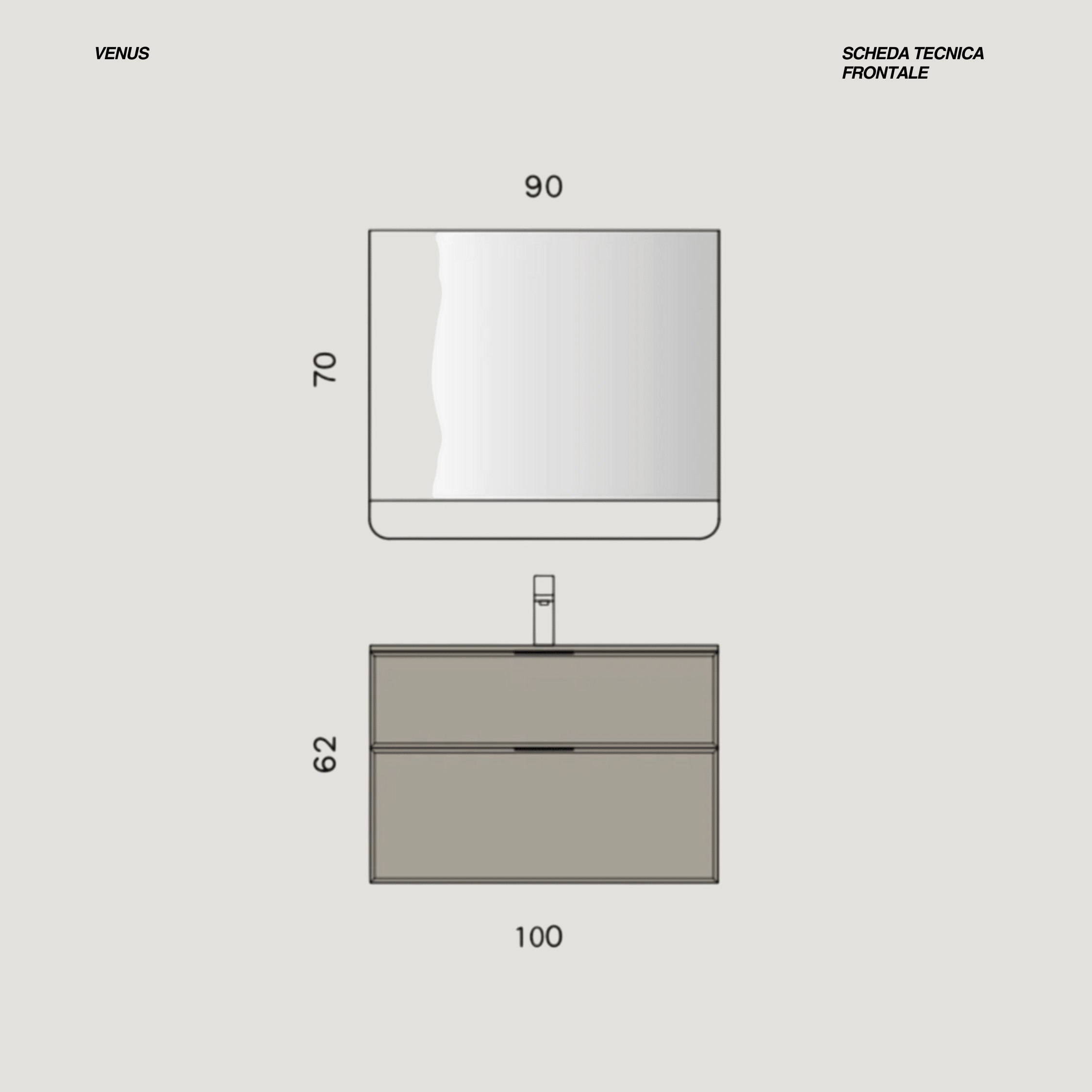Mobile Bagno Sospeso 100 Cm Due Cassetti Specchio Con Mensola e Lampada Led 90x70 Cm ItalBagno "Venus 108"