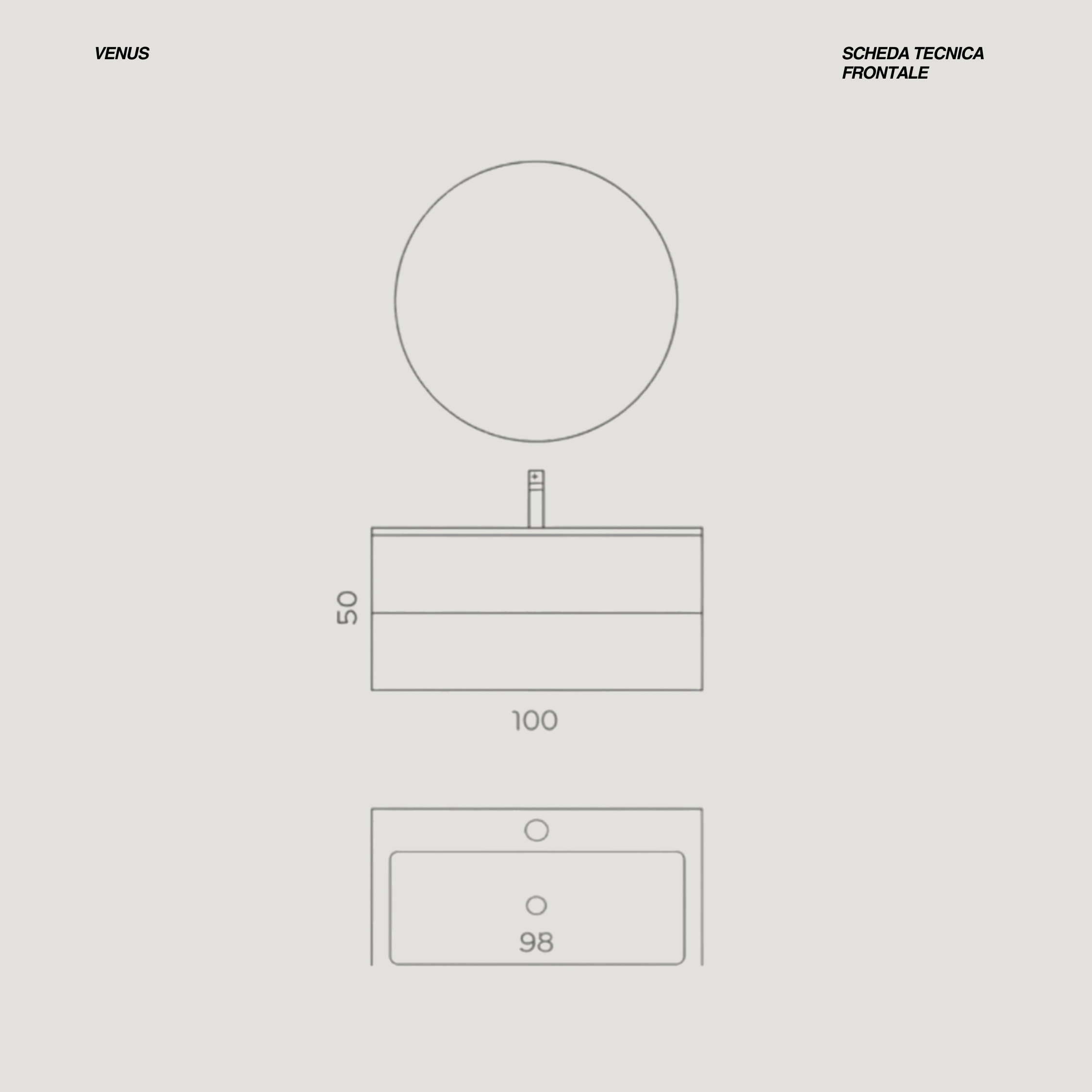 Mobile Bagno Sospeso 100 Cm Due Cassetti Specchio Retroilluminato Diam.90 Cm ItalBagno "Venus VE50"