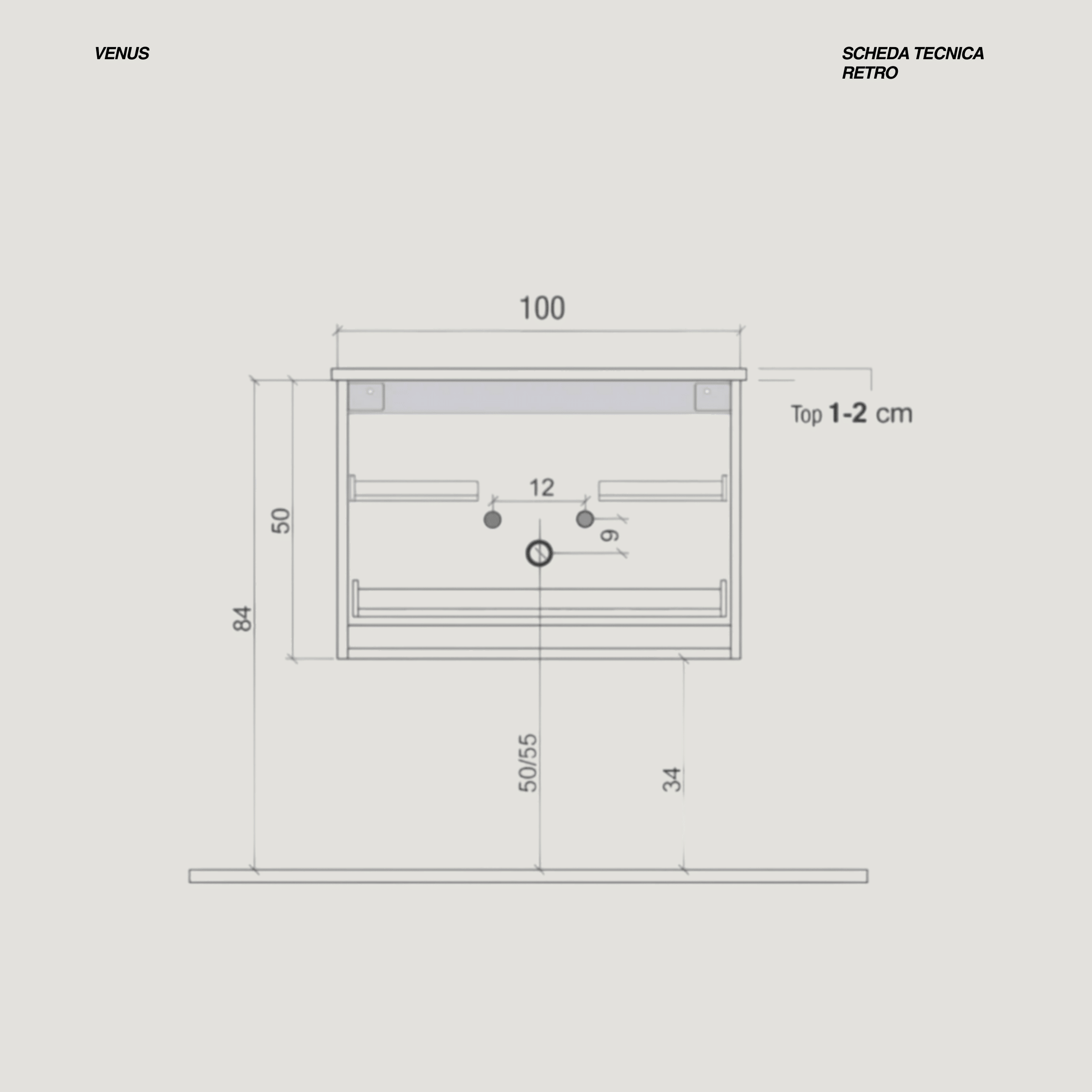 - Misure base: L 100 x P 45 x H 50 (cm)
