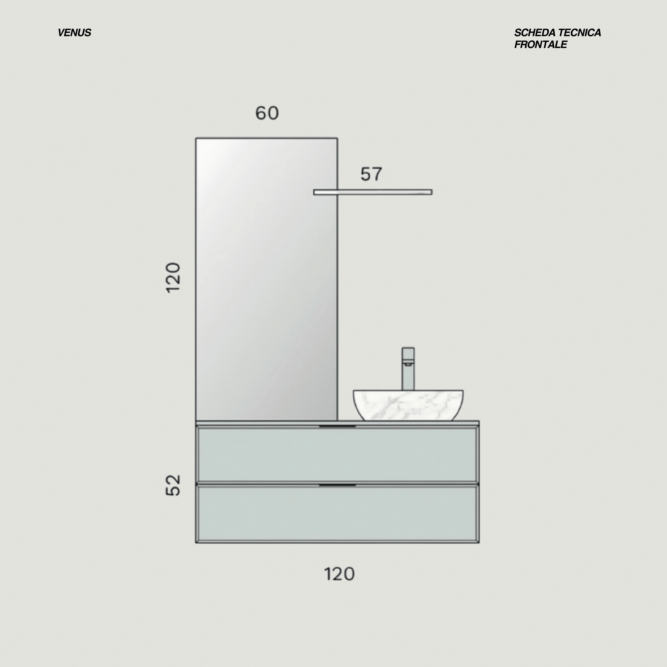 Mobile Bagno Sospeso 120 Cm Due Cassetti Specchio Retroilluminato Con Mensola 60x120 Cm ItalBagno "Venus 104"