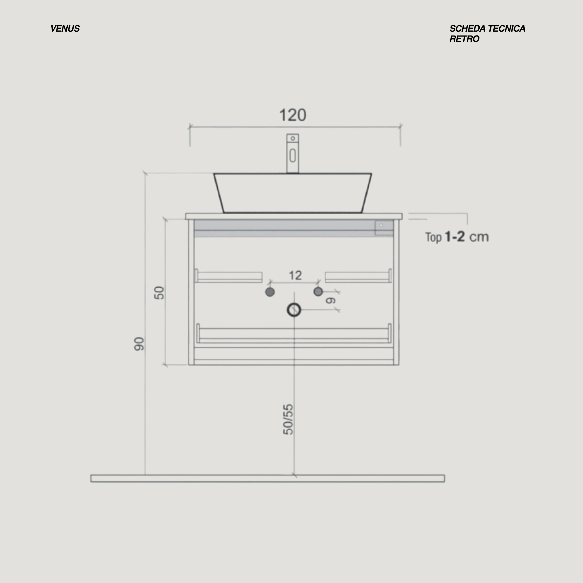 - Misure base: L 120 x P 45 x H 50 (cm)