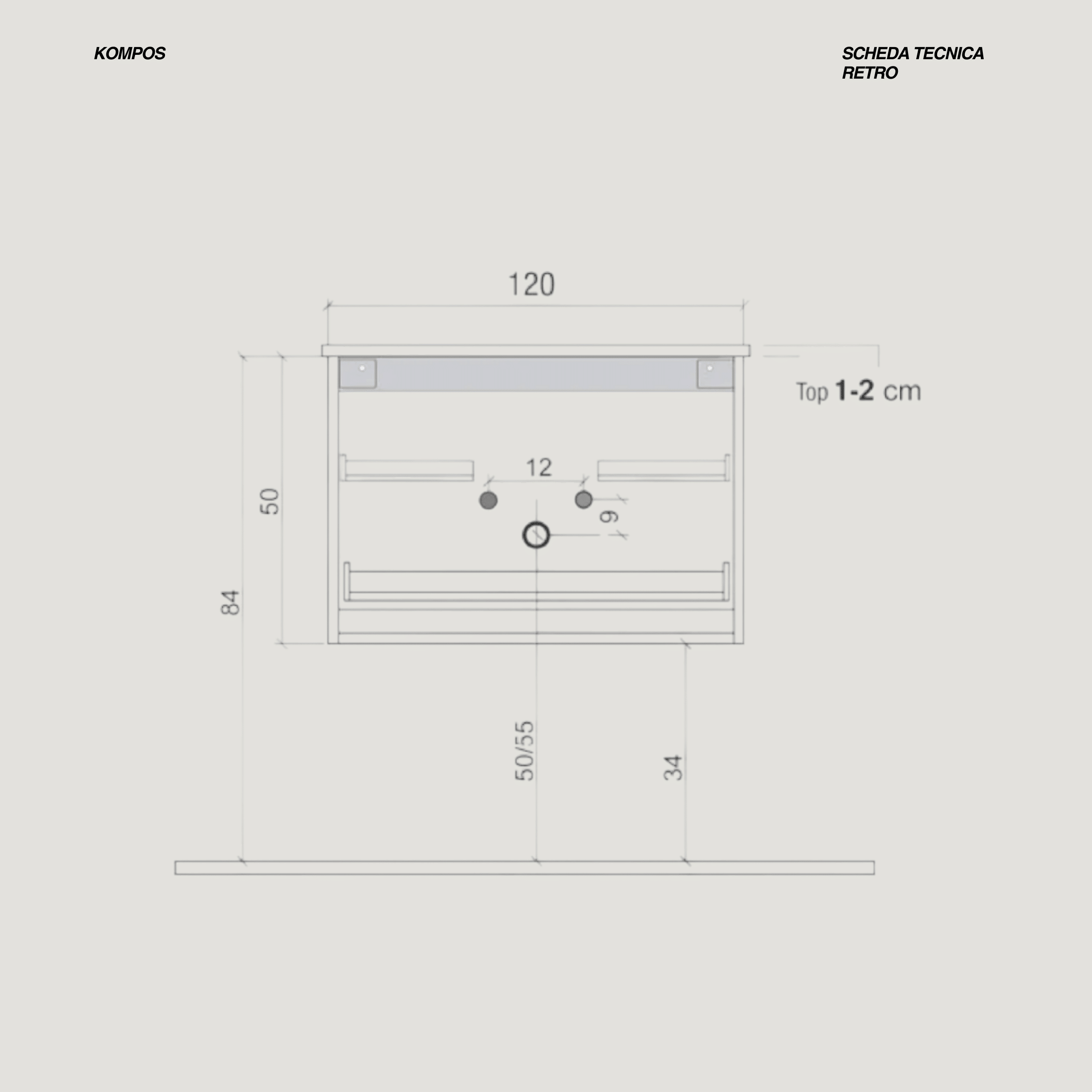 - Misure base+anta a dx: L 120 x P 50 x H 50 (cm)