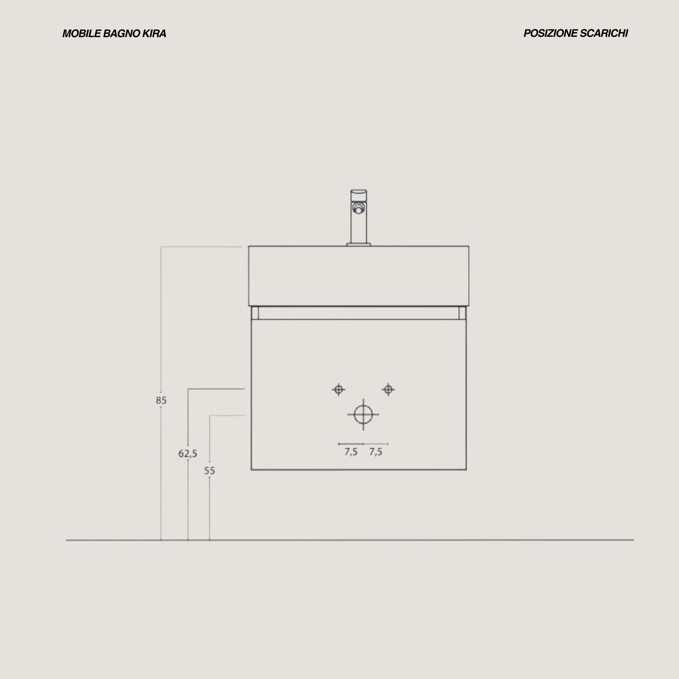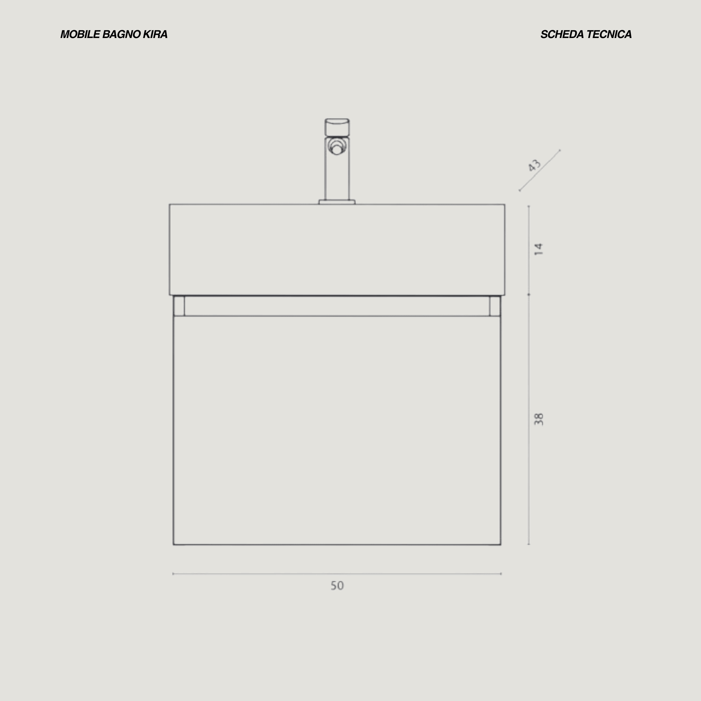 La composizione bagno sospesa della linea Kira è realizzata in MDF da 16 mm con finitura roccia, una scelta che dona luminosità e pulizia visiva all’ambiente. Il design compatto è valorizzato dalla consolle in ceramica, resistente e semplice da mantenere, perfettamente integrata nelle dimensioni del mobile.L’anta è dotata di chiusura slow‑motion, pensata per garantire un’apertura morbida e silenziosa. All’interno offre uno spazio contenitivo pratico, ideale per bagni piccoli o ambienti secondari. Il mobile arriva già assemblato, semplificando l’installazione e riducendo i tempi di montaggio.Il lavabo in ceramica misura 51 × 14 × 43 cm, mentre il mobile ha dimensioni L50 × H38 × P41,5 cm. L’anta, nelle misure 50 × 35 cm, completa la struttura con un’estetica essenziale e contemporanea. Lo specchio incluso è un modello a filo lucido da 50 × 60 cm, dotato di gancio per montaggio sia orizzontale sia verticale, così da adattarsi facilmente a diverse configurazioni.La composizione non include la rubinetteria, lasciando libertà di scelta per personalizzare l’allestimento secondo il proprio stile.