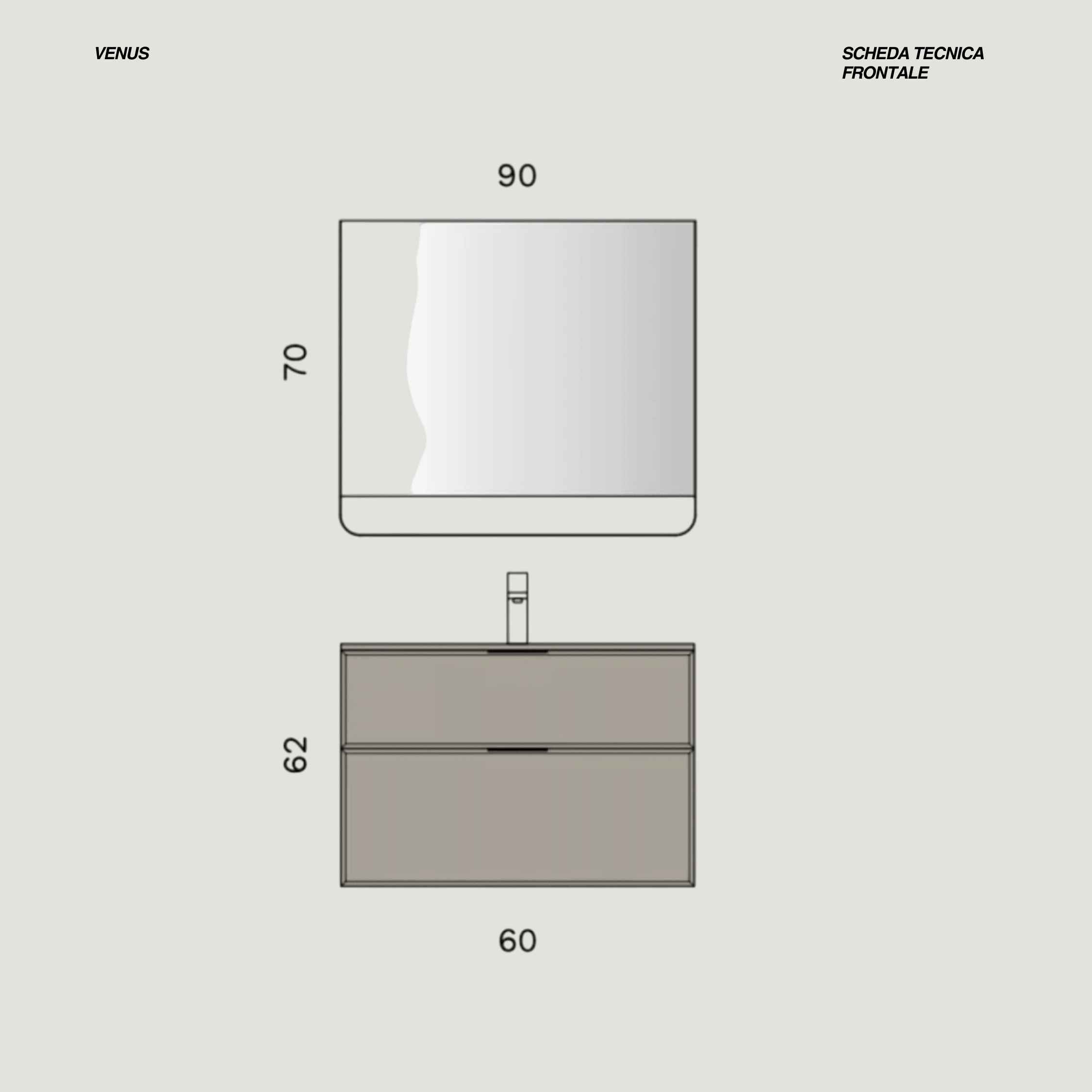 Mobile Bagno Sospeso 60 Cm Due Cassetti Specchio Con Mensola e Lampada Led 50x80 Cm ItalBagno "Venus 108"