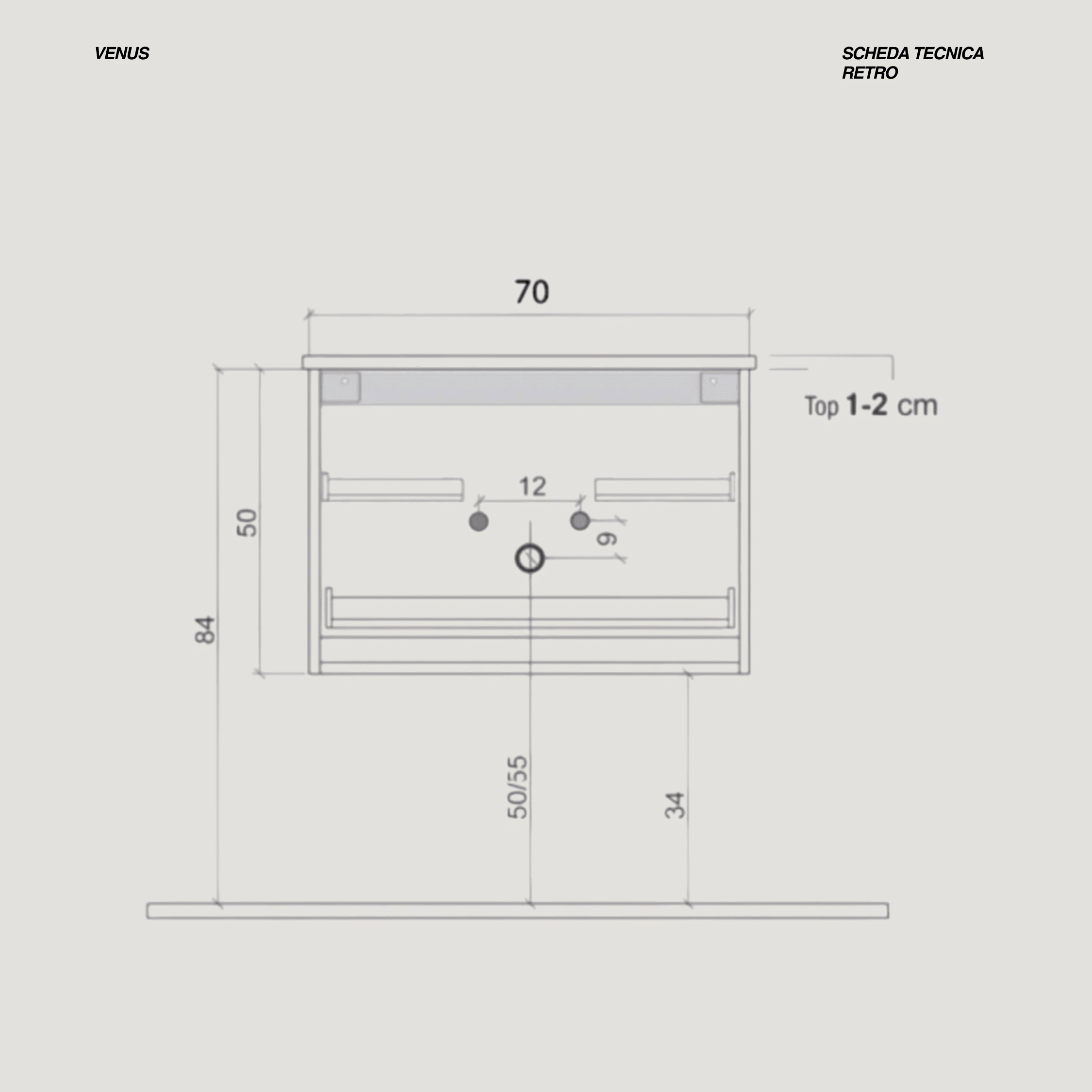 - Misure base: L 70 x P 45 x H 50 (cm)