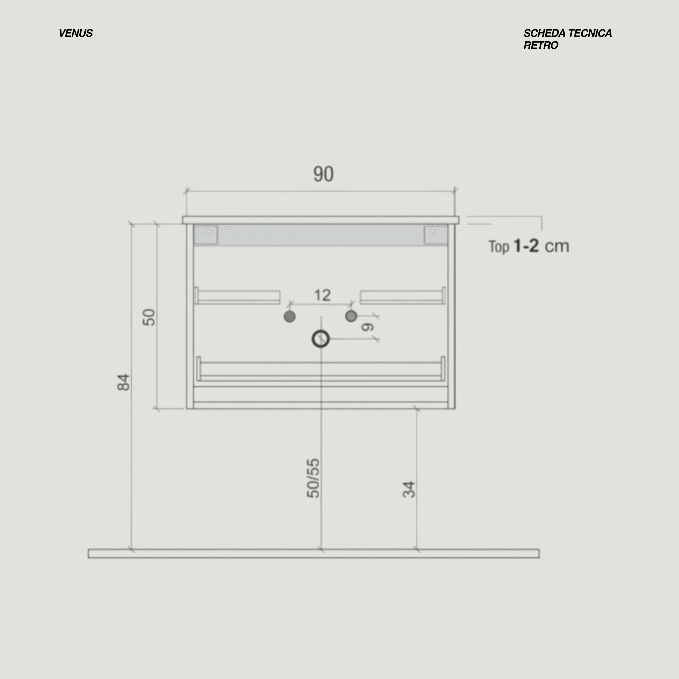 - Misure lavabo: L 91 x P 46,5 x H 6 (cm)